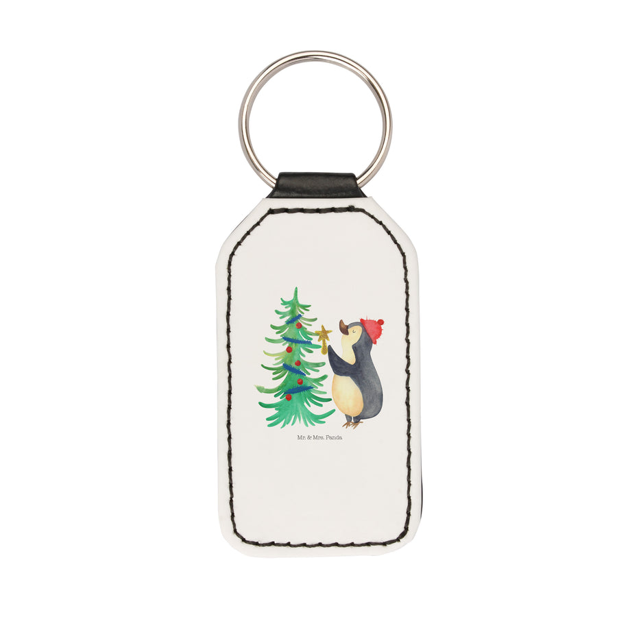 Rechteckig Schlüsselanhänger Pinguin Weihnachtsbaum - Weiß