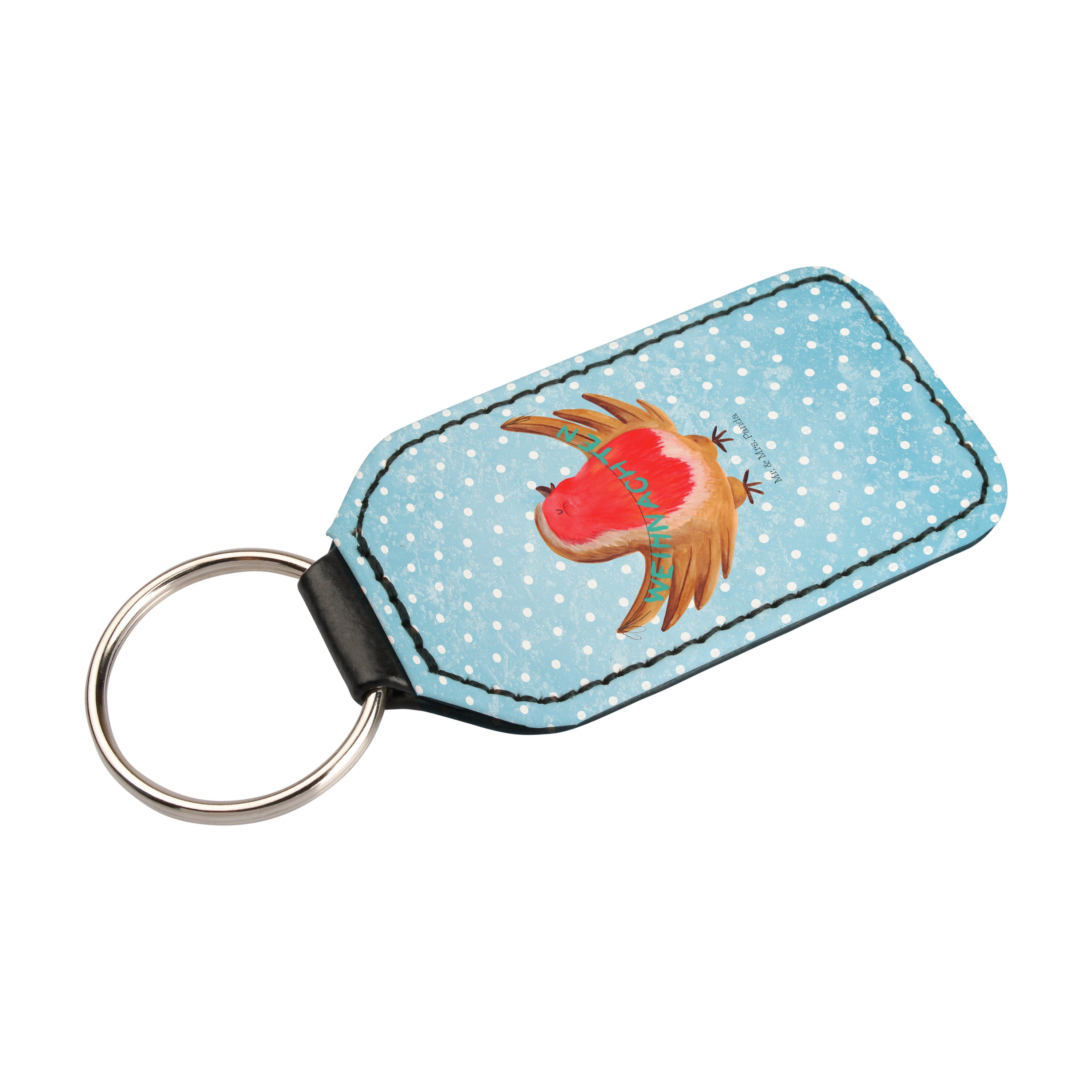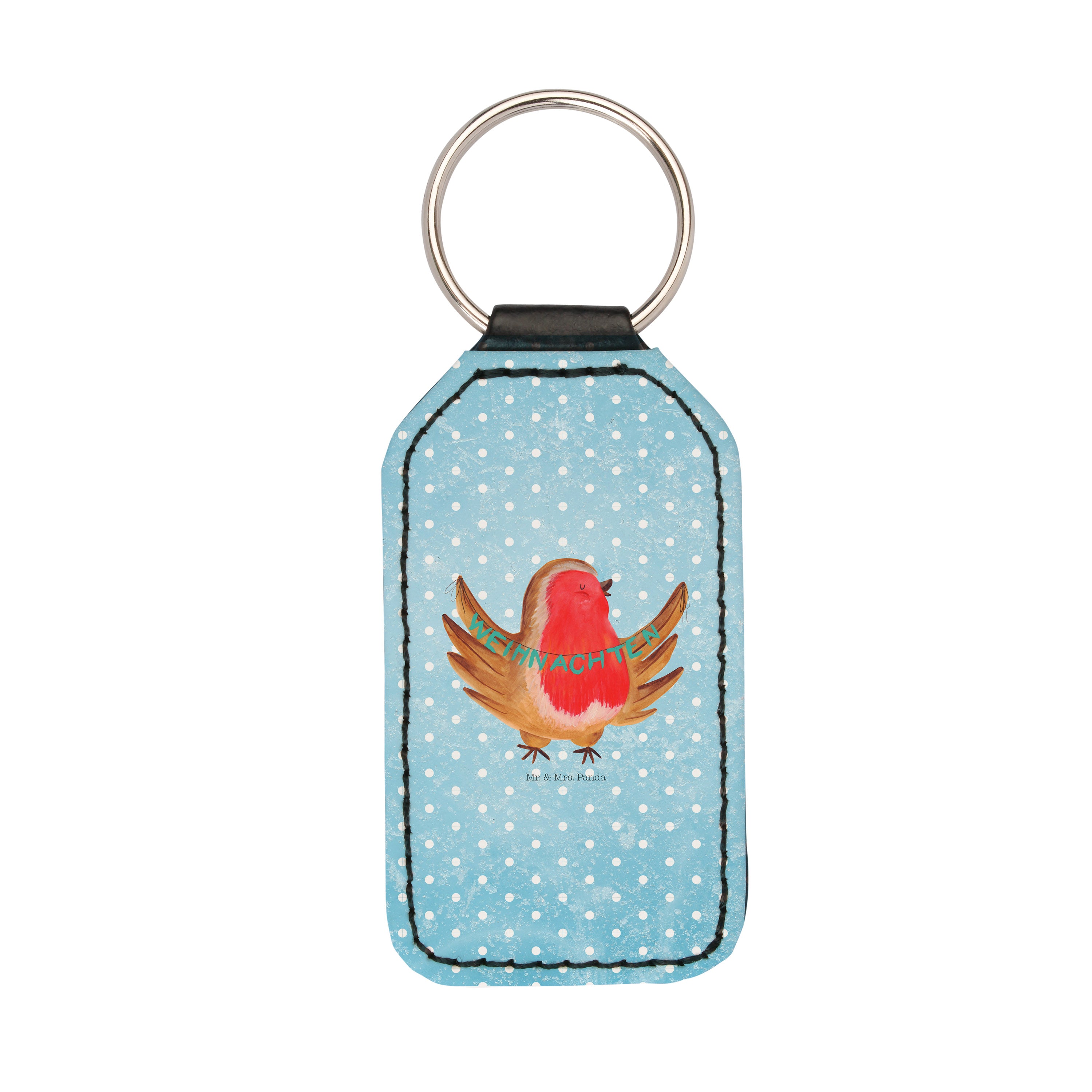 Rechteckig Schlüsselanhänger Rotkehlchen Weihnachten - Eisblau