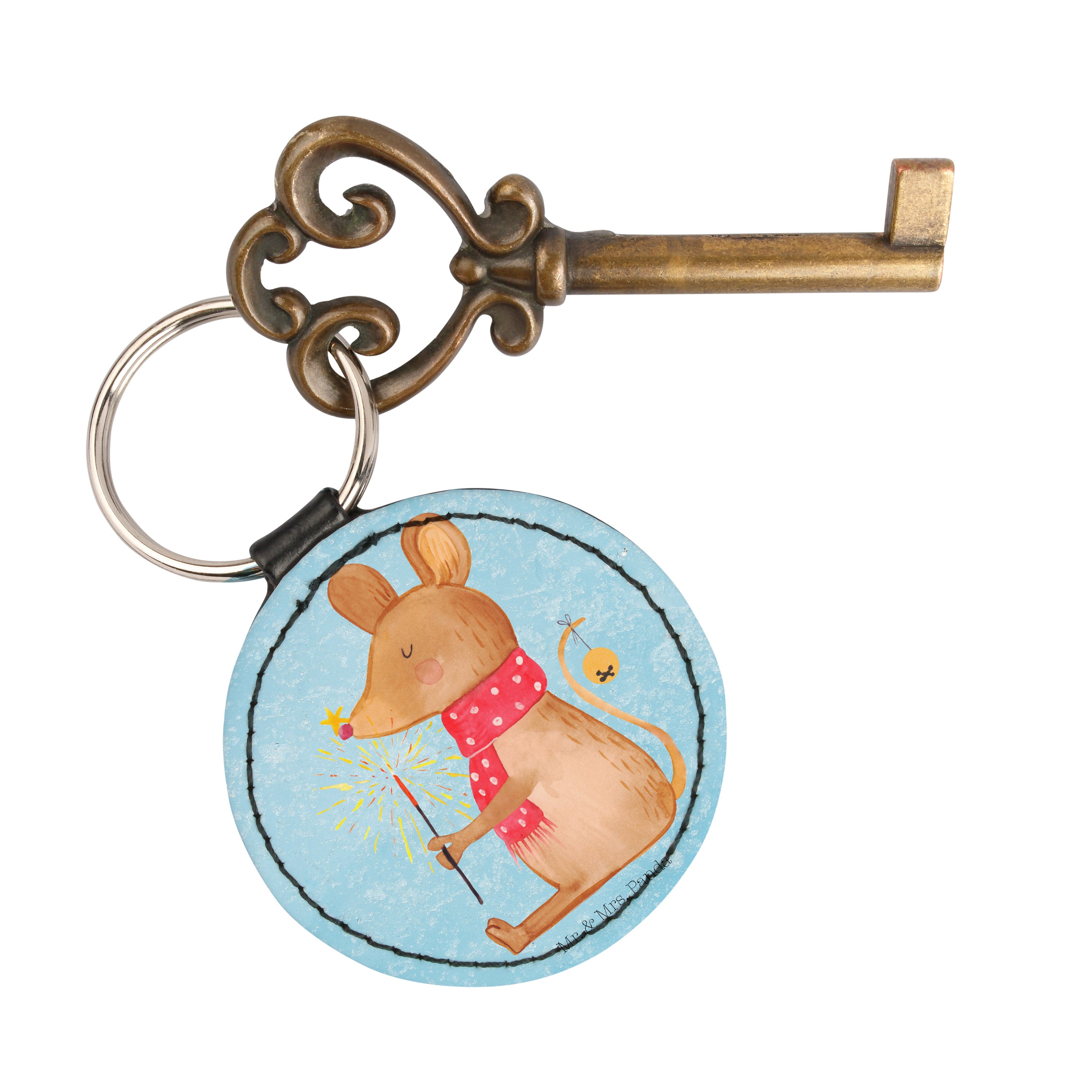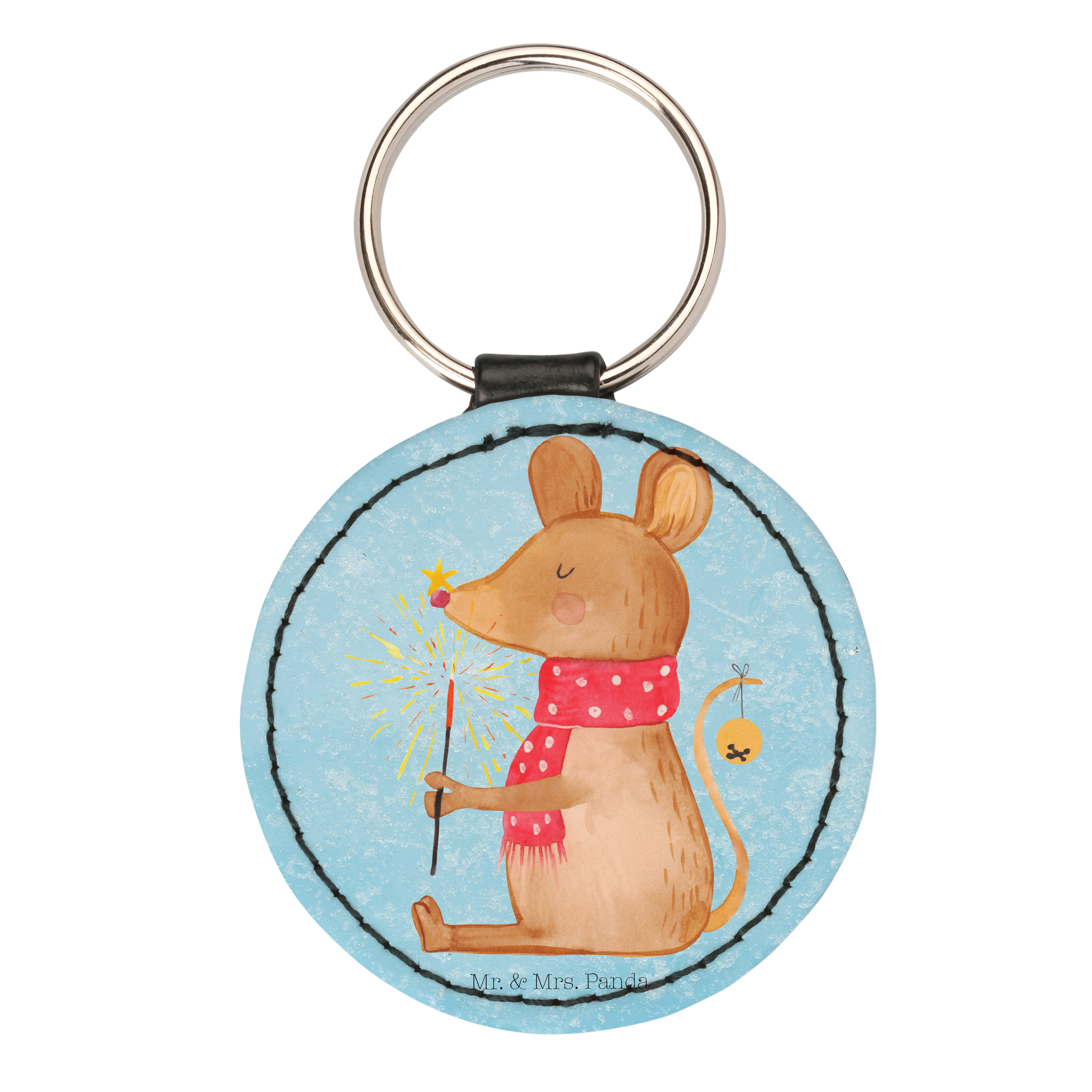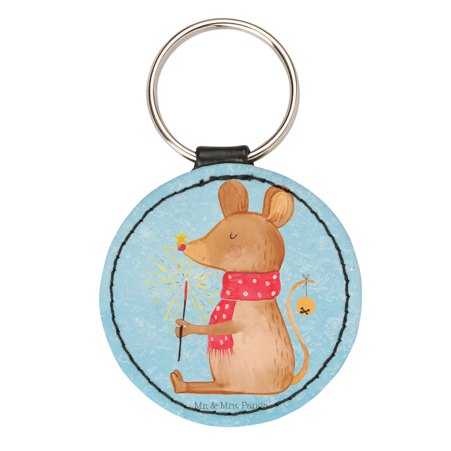 Rund Schlüsselanhänger Weihnachtsmaus - Eisblau