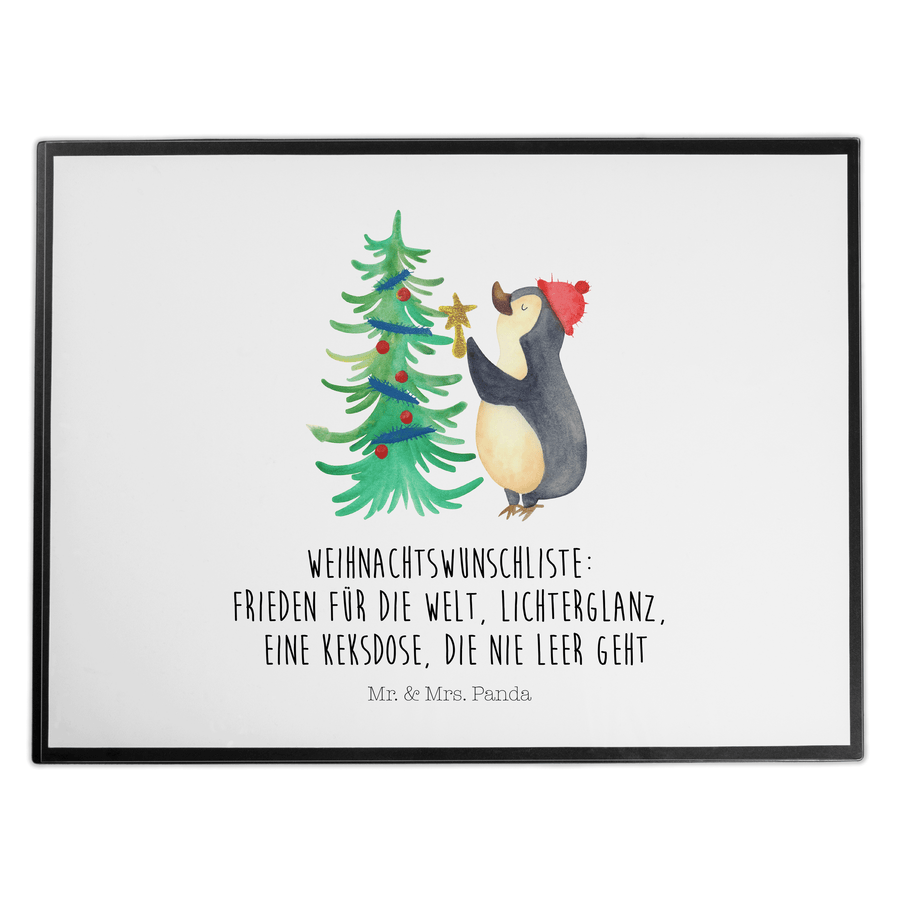 Schreibtischunterlage Pinguin Weihnachtsbaum - mit Spruch - Weiß
