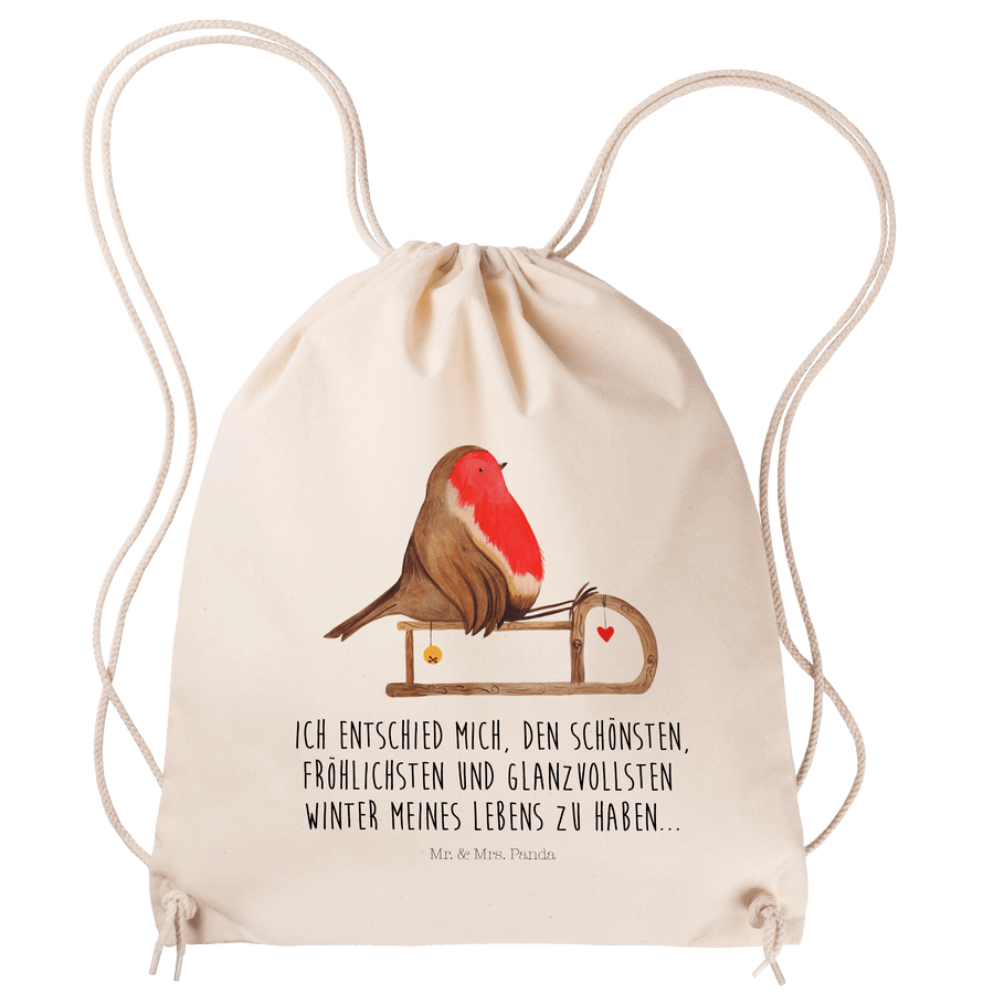 Sportbeutel Rotkehlchen Schlitten - mit Spruch - Transparent