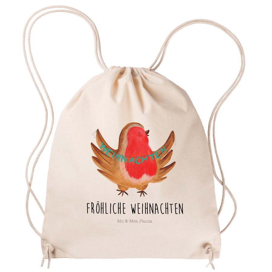 Sportbeutel Rotkehlchen Weihnachten - mit Spruch - Transparent