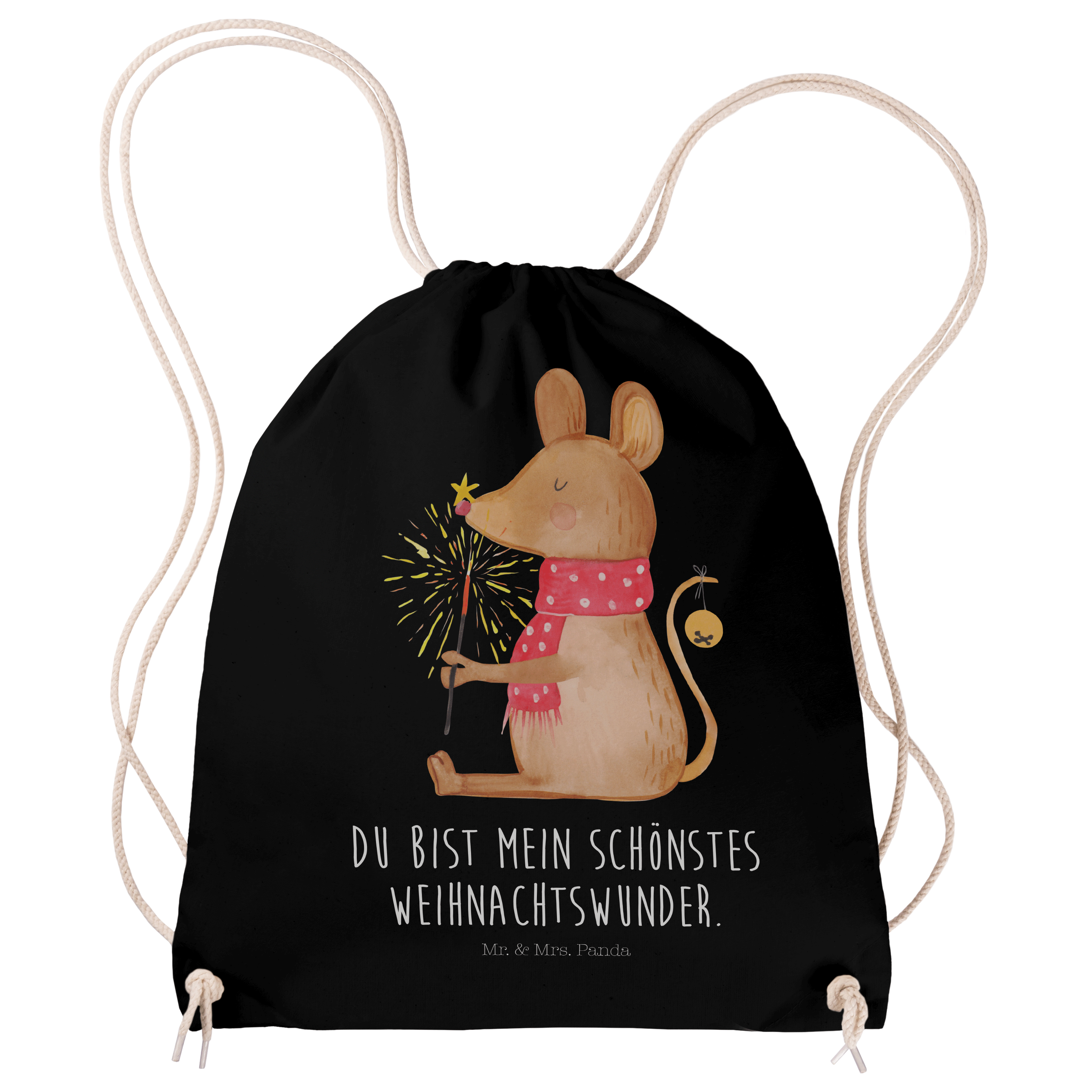 Sportbeutel Weihnachtsmaus - mit Spruch - Schwarz