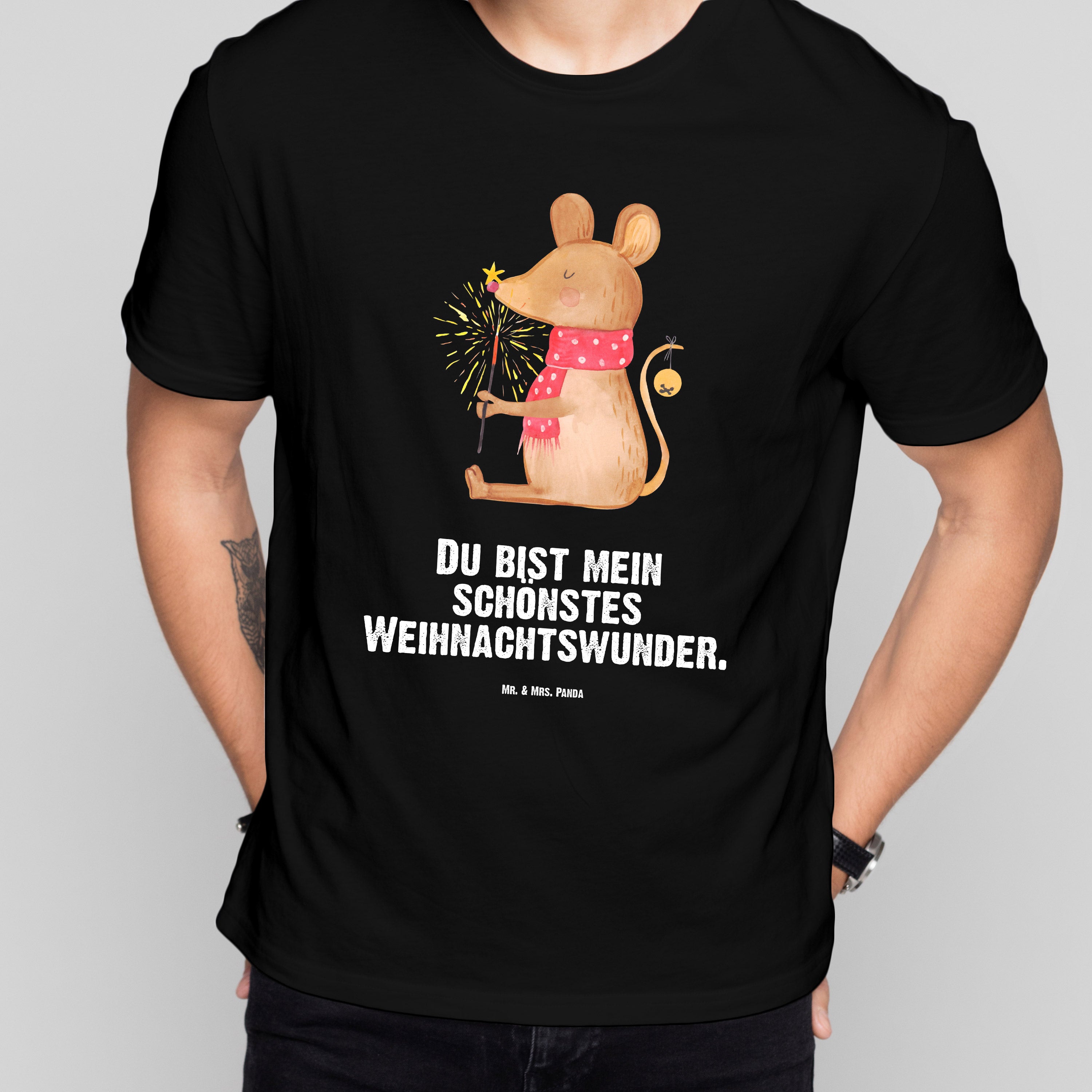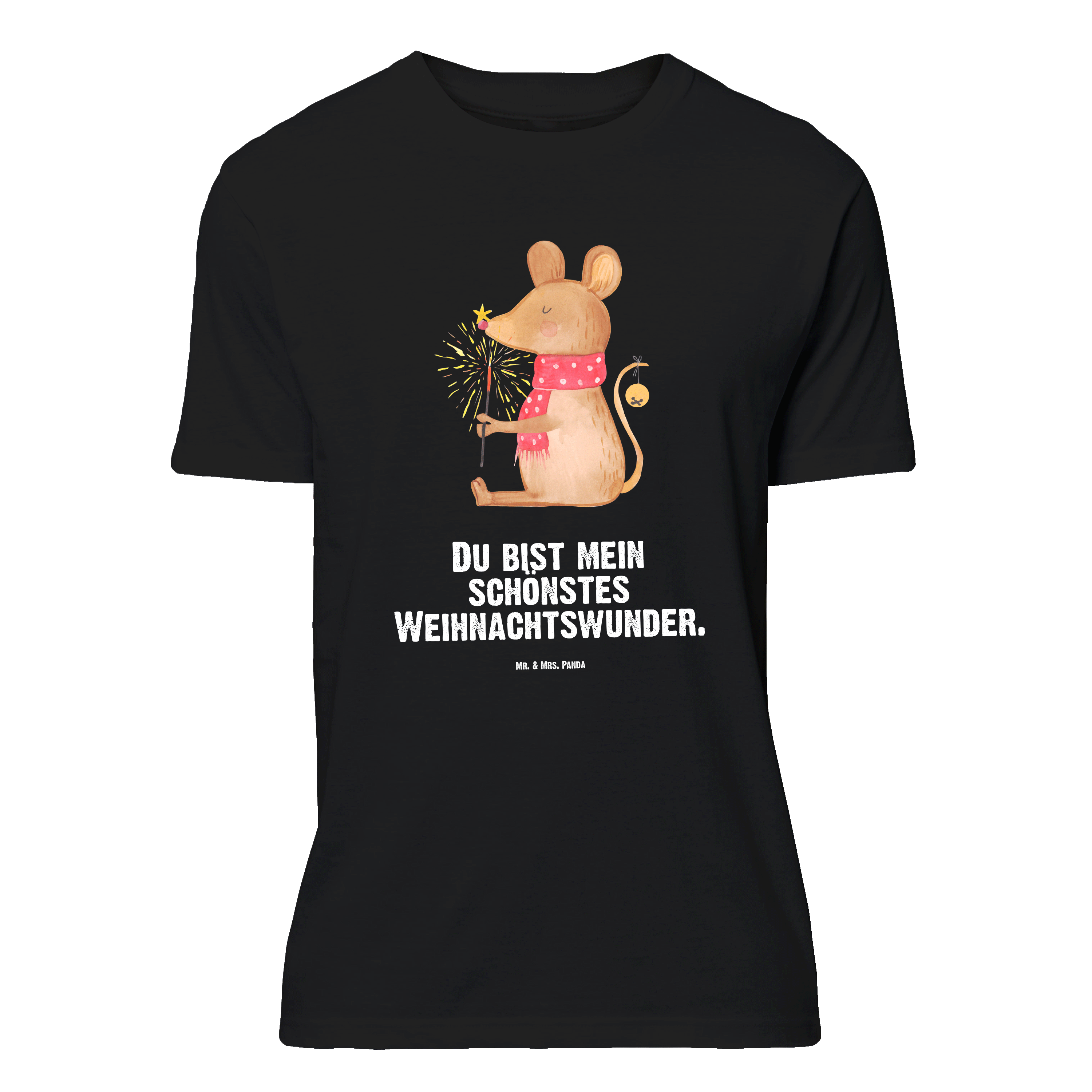 Größe L T-Shirt Weihnachtsmaus - mit Spruch - Schwarz