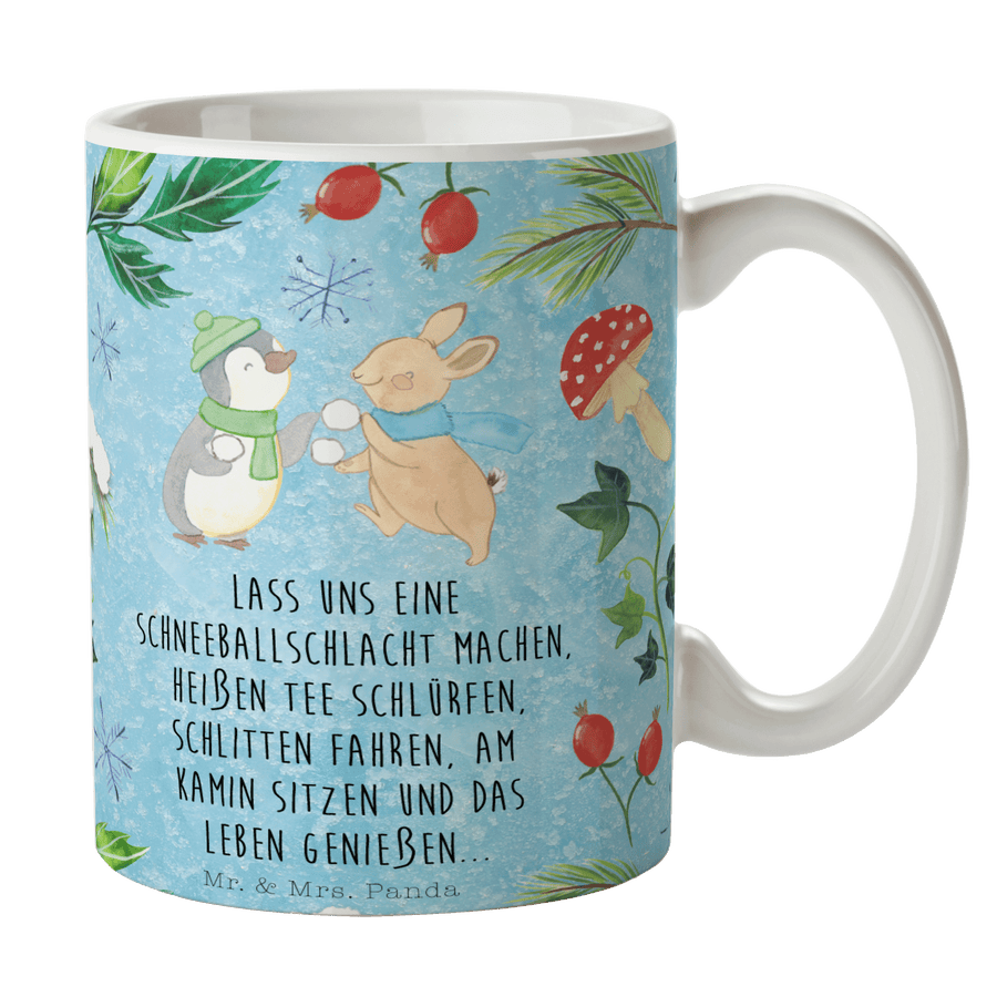 Tasse Pinguin Hase Schneeballschlacht - Eisblau