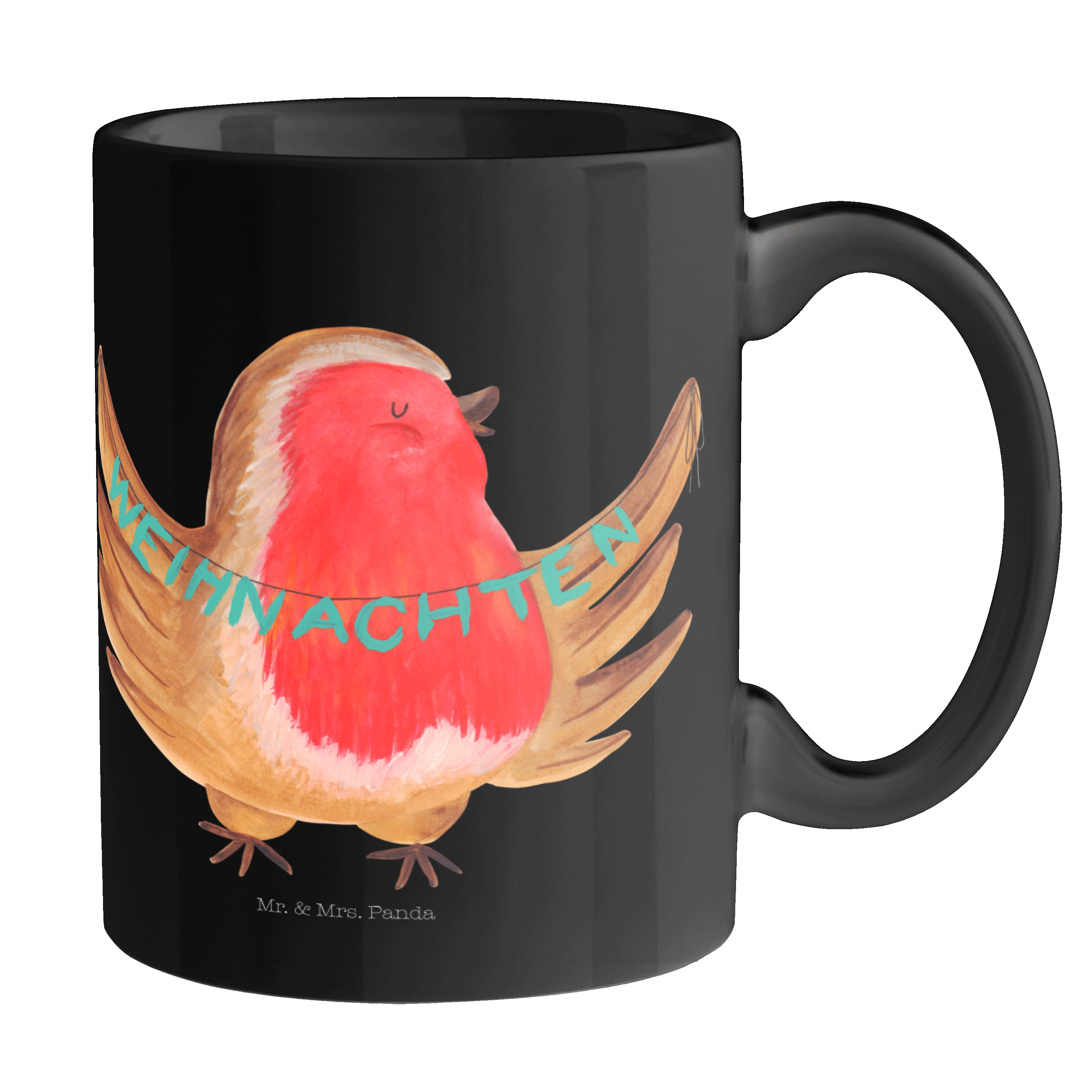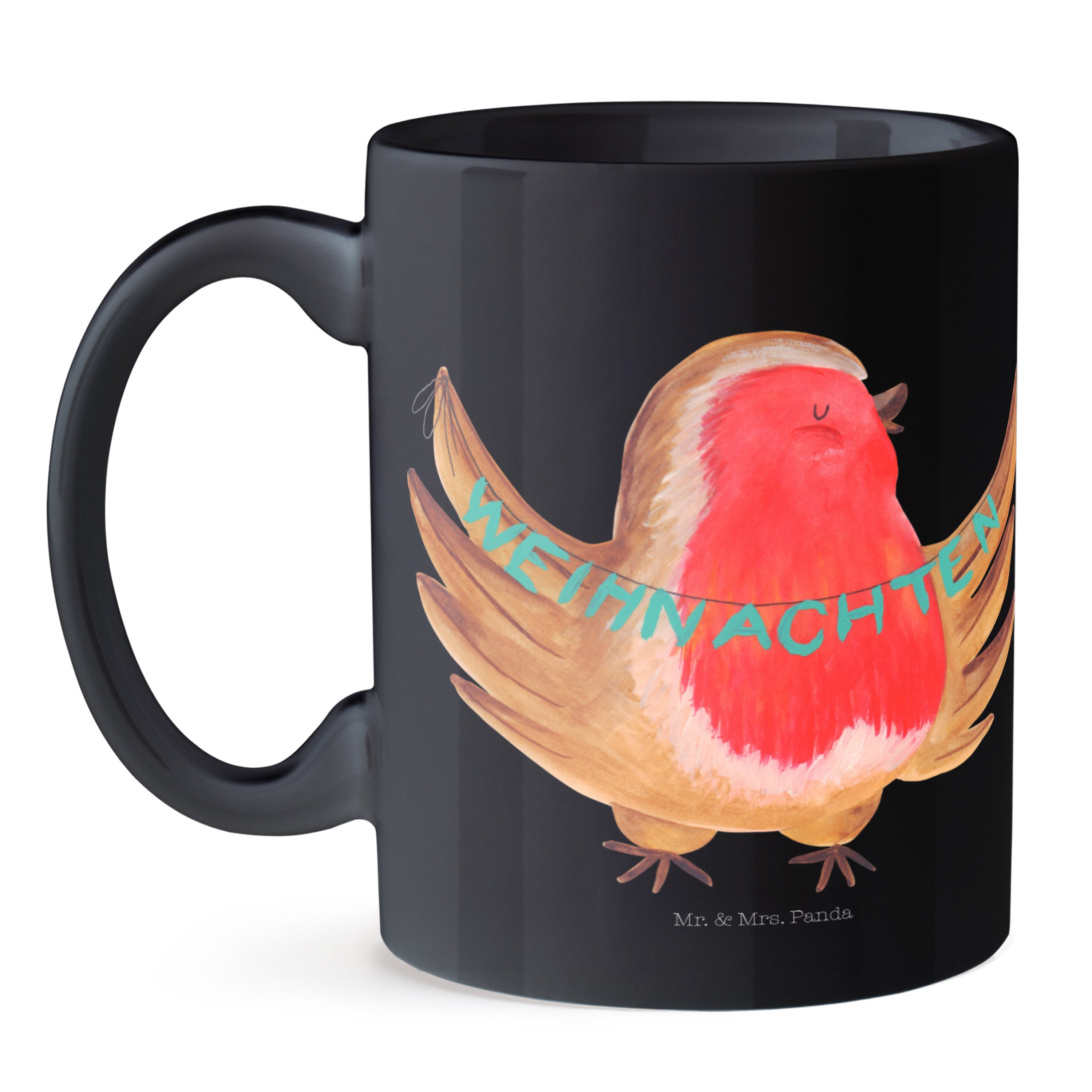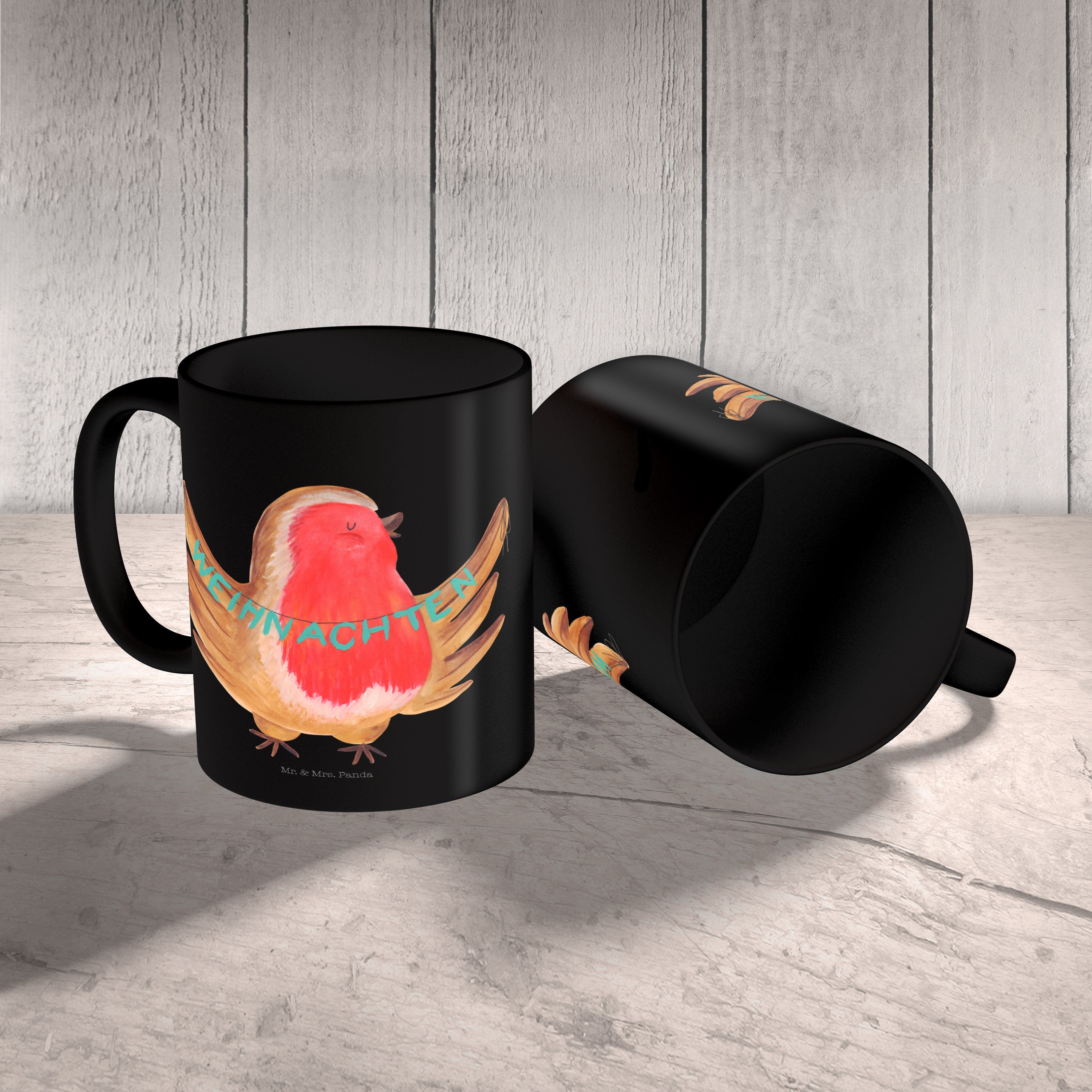 Tasse Rotkehlchen Weihnachten - ohne Spruch - Schwarz