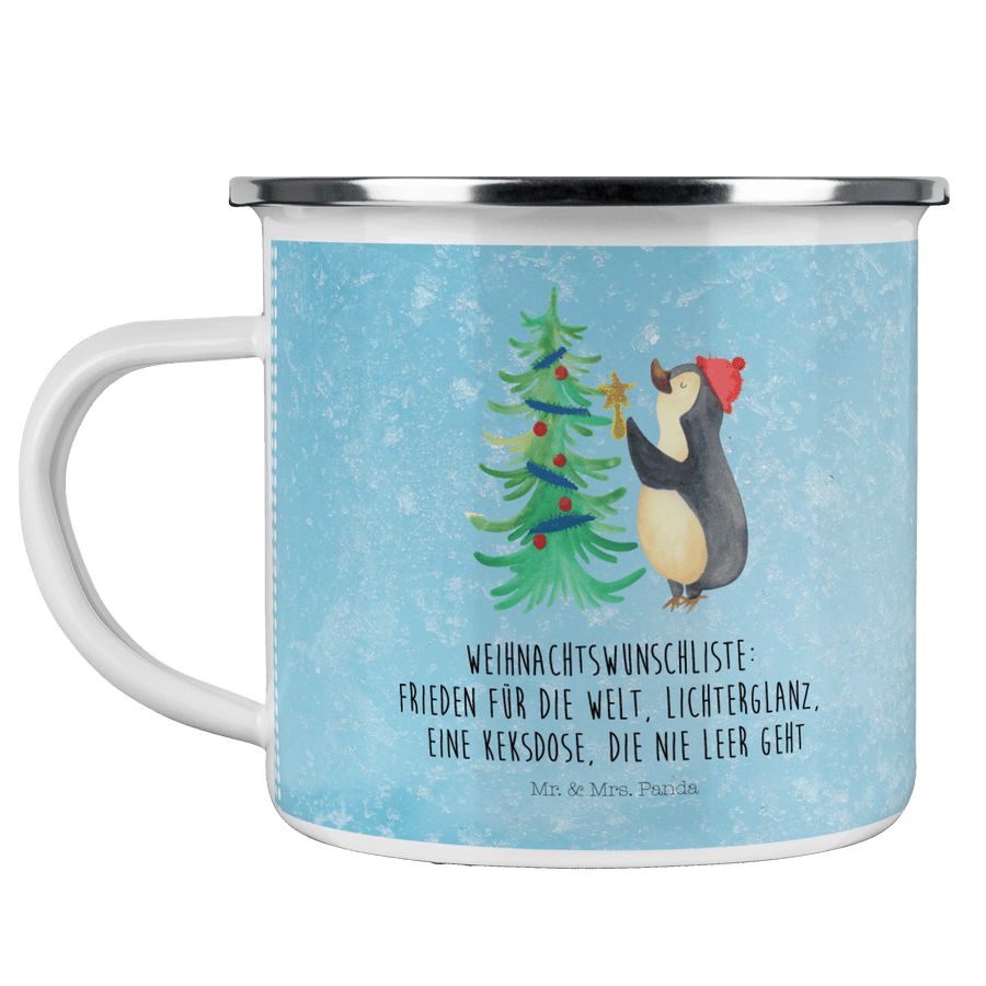 Camping Emaille Tasse Pinguin Weihnachtsbaum - mit Spruch - Eisblau