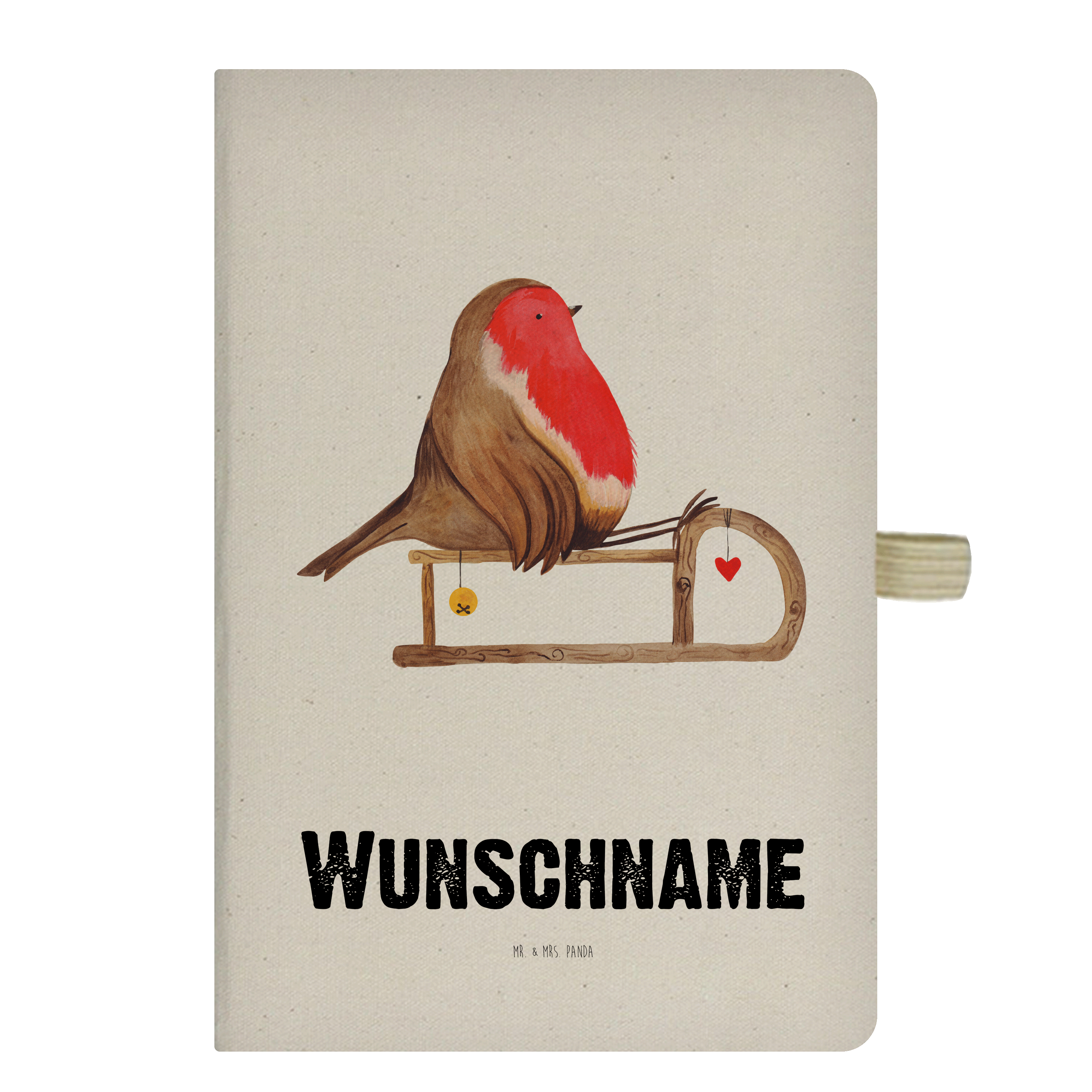 DIN A4 Personalisiertes Notizbuch Rotkehlchen Schlitten Weihnachten, Schlitten, Vogel Personalisiertes Notizbuch, Notizbuch mit Namen, Notizbuch bedrucken, Personalisierung, Namensbuch, Namen  Winter, Weihnachten, Weihnachtsdeko, Nikolaus, Advent, Heiligabend, Wintermotiv