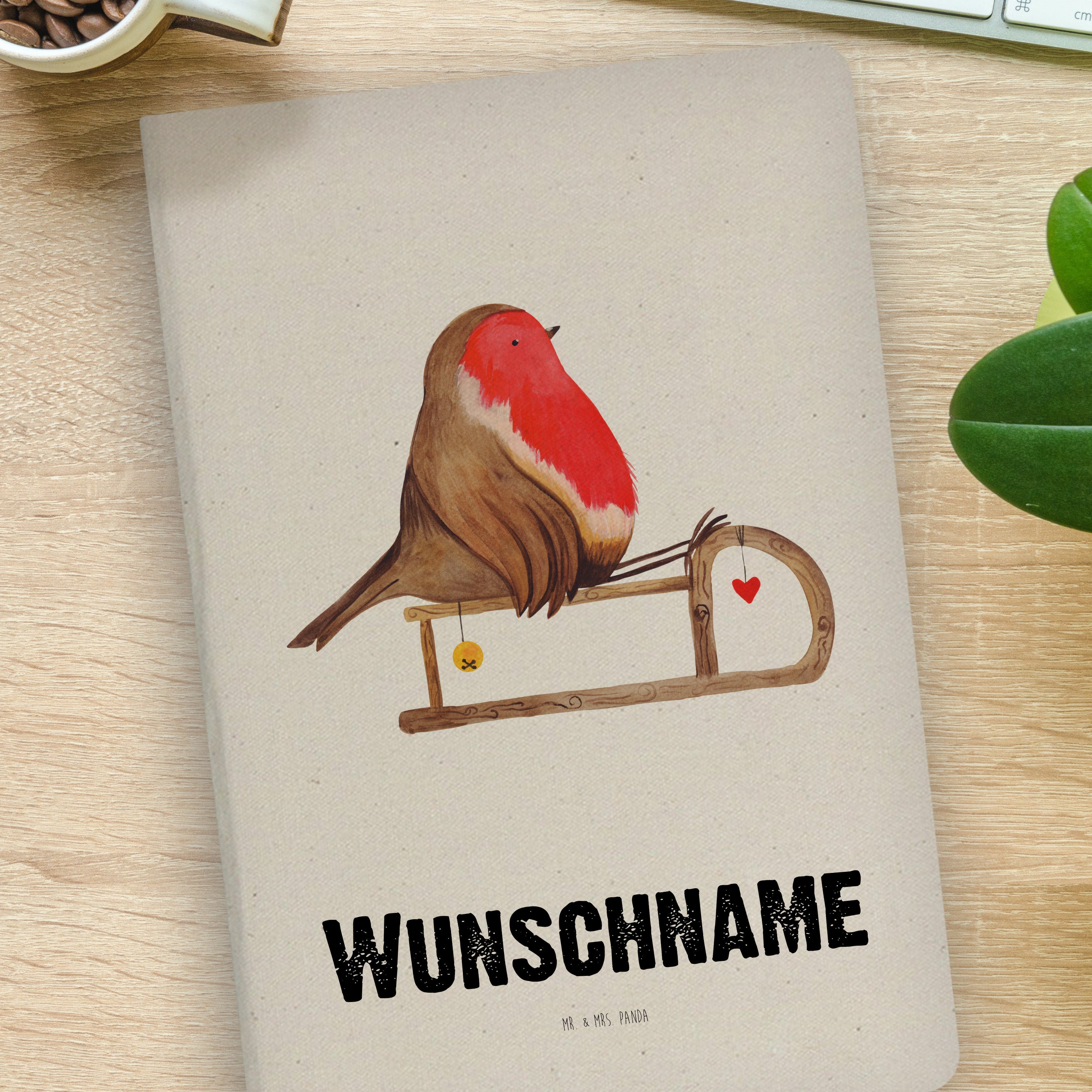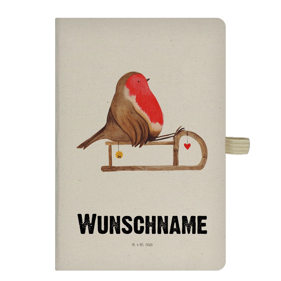DIN A4 Personalisiertes Notizbuch Rotkehlchen Schlitten