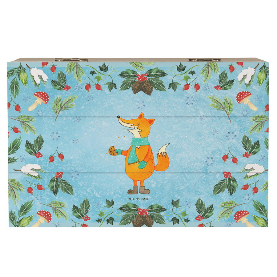 Holzkiste Fuchs Keksdose - 19 x 12 cm - ohne Spruch - Eisblau