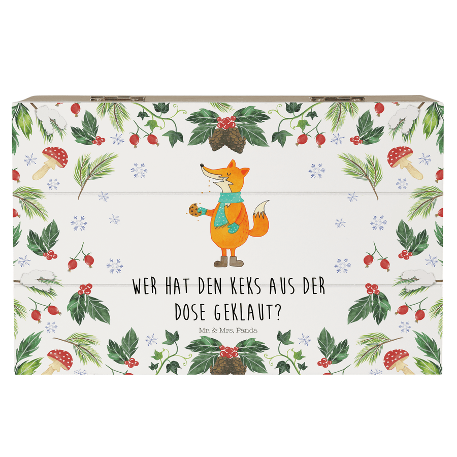 Holzkiste Fuchs Keksdose - 19 x 12 cm - mit Spruch - Weiß