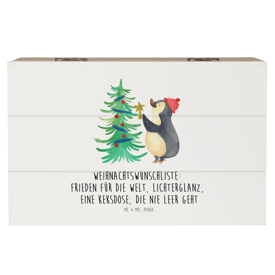 Holzkiste Pinguin Weihnachtsbaum - 19 x 12 cm - mit Spruch - Weiß
