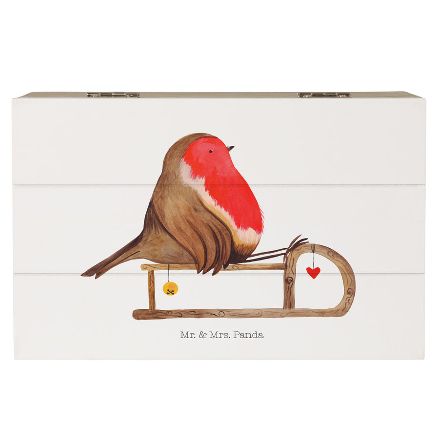 Holzkiste Rotkehlchen Schlitten - 19 x 12 cm - ohne Spruch - Weiß