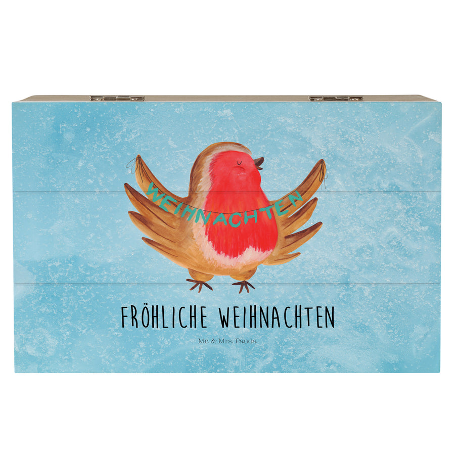 Holzkiste Rotkehlchen Weihnachten - 19 x 12 cm - mit Spruch - Eisblau