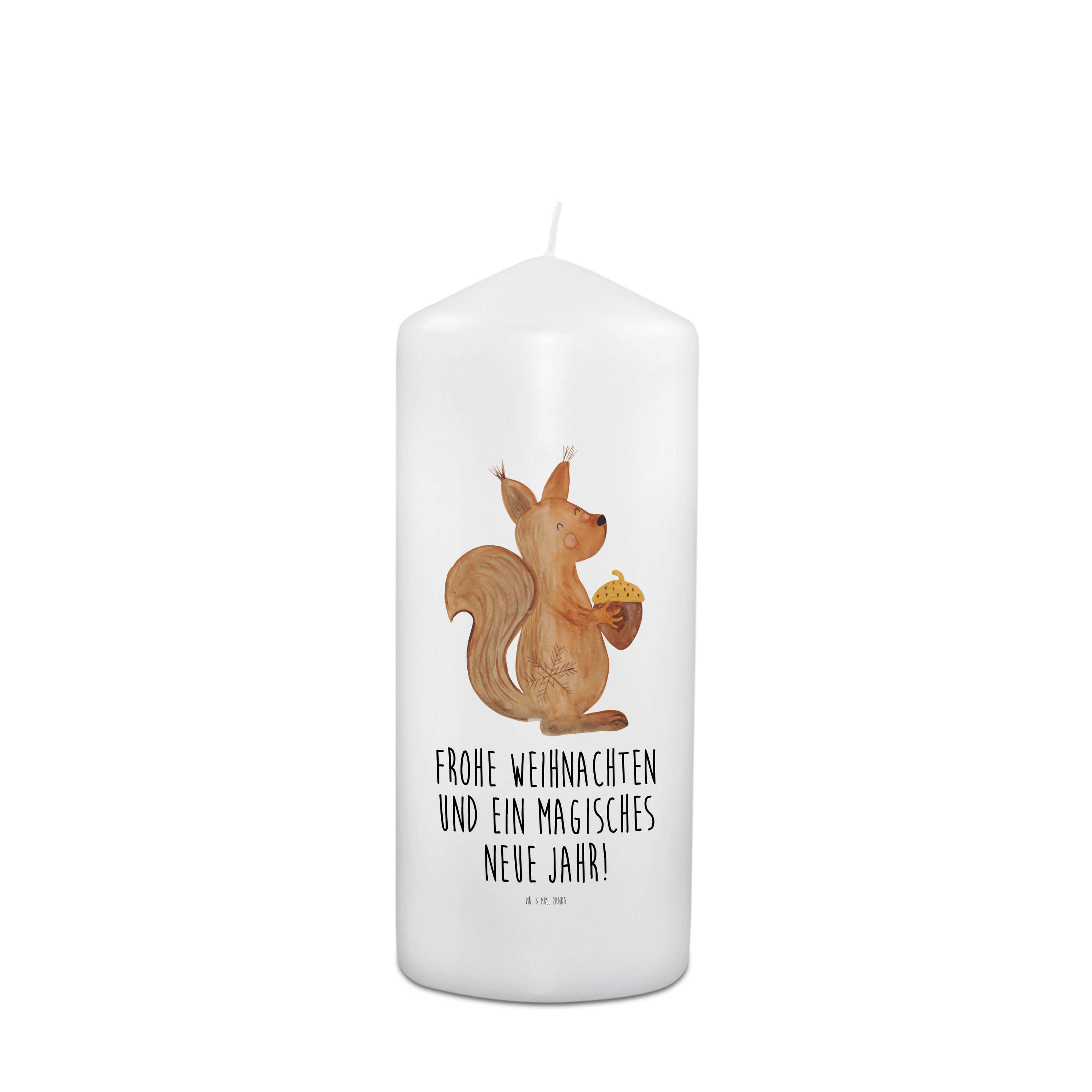 Kerze Eichhörnchen Weihnachten - 29 x 8 cm XL - mit Spruch