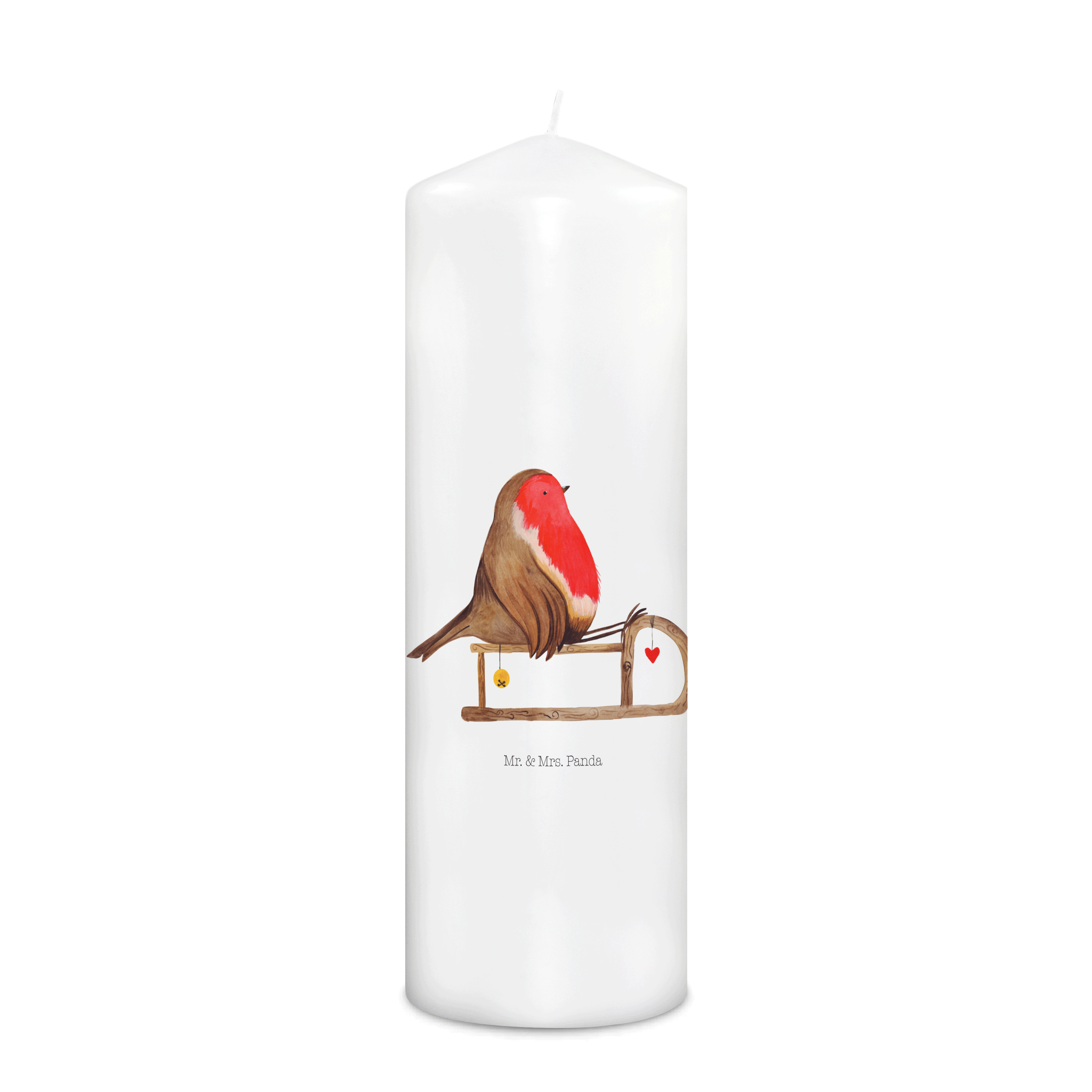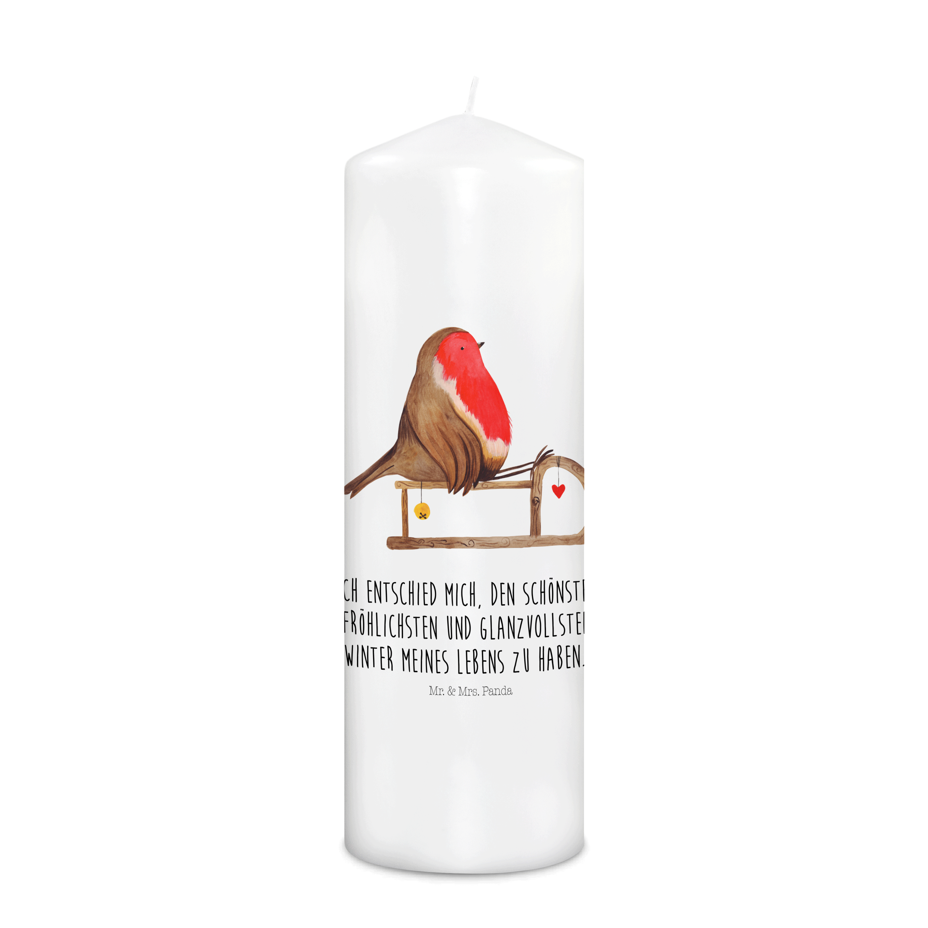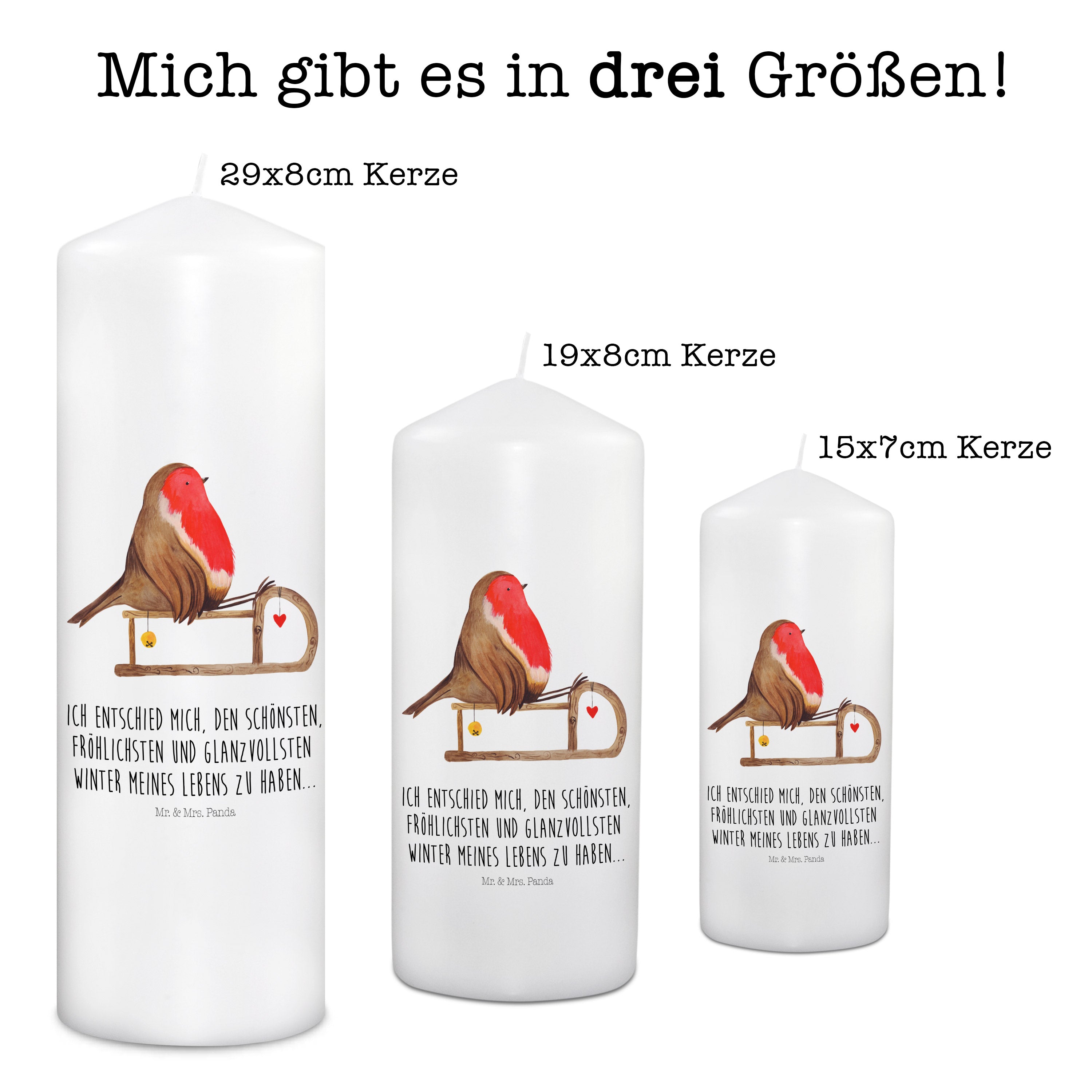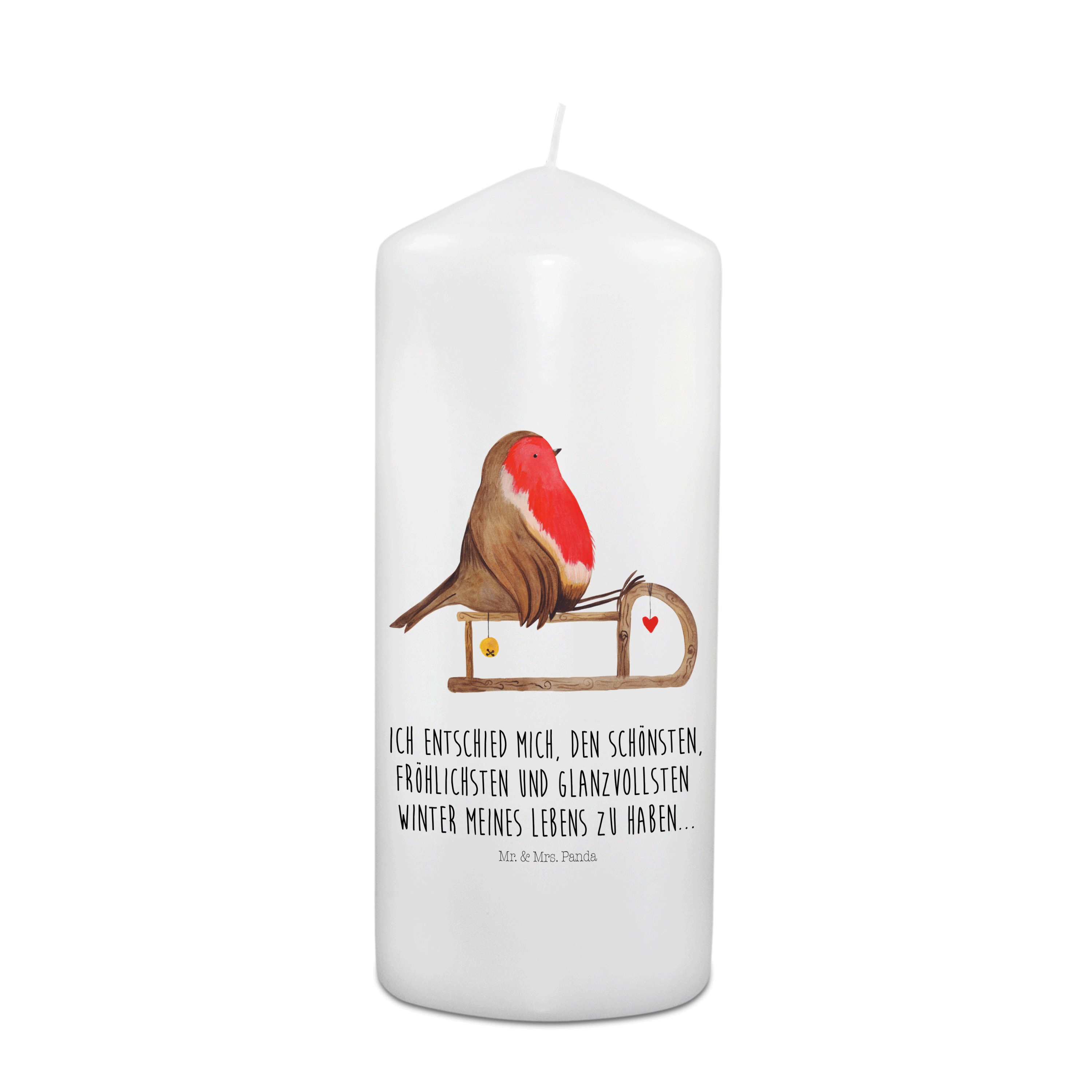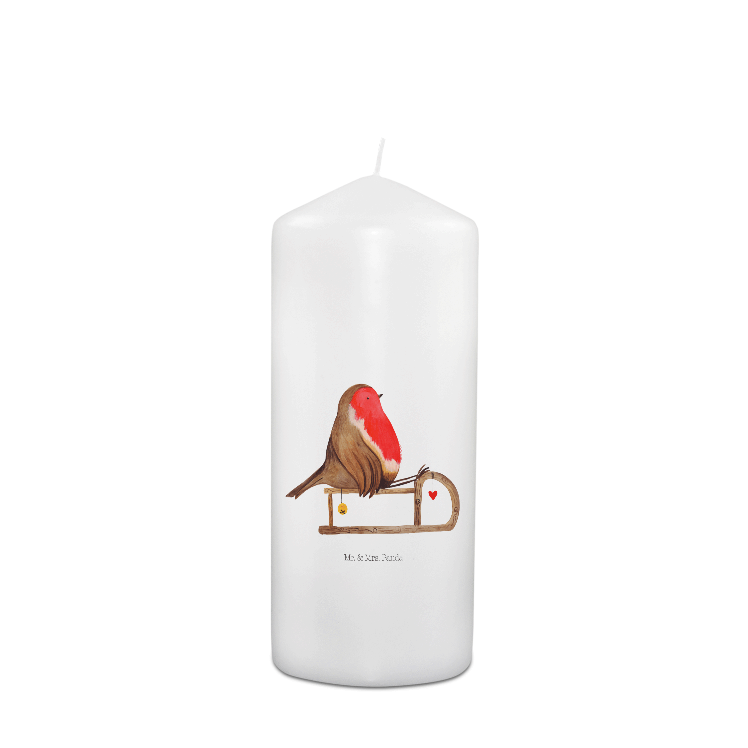 Kerze Rotkehlchen Schlitten - 15 x 7 cm - mit Spruch