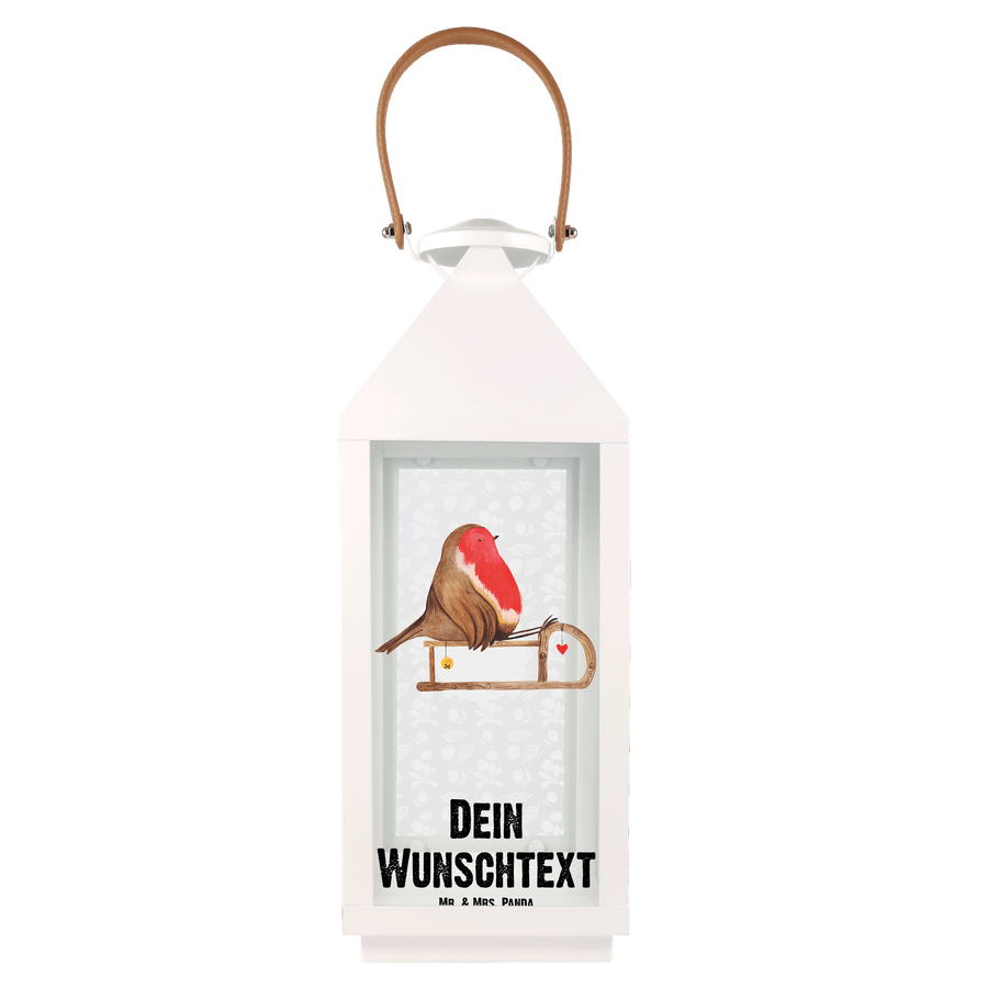 Personalisierte Deko Laterne Rotkehlchen Schlitten - L