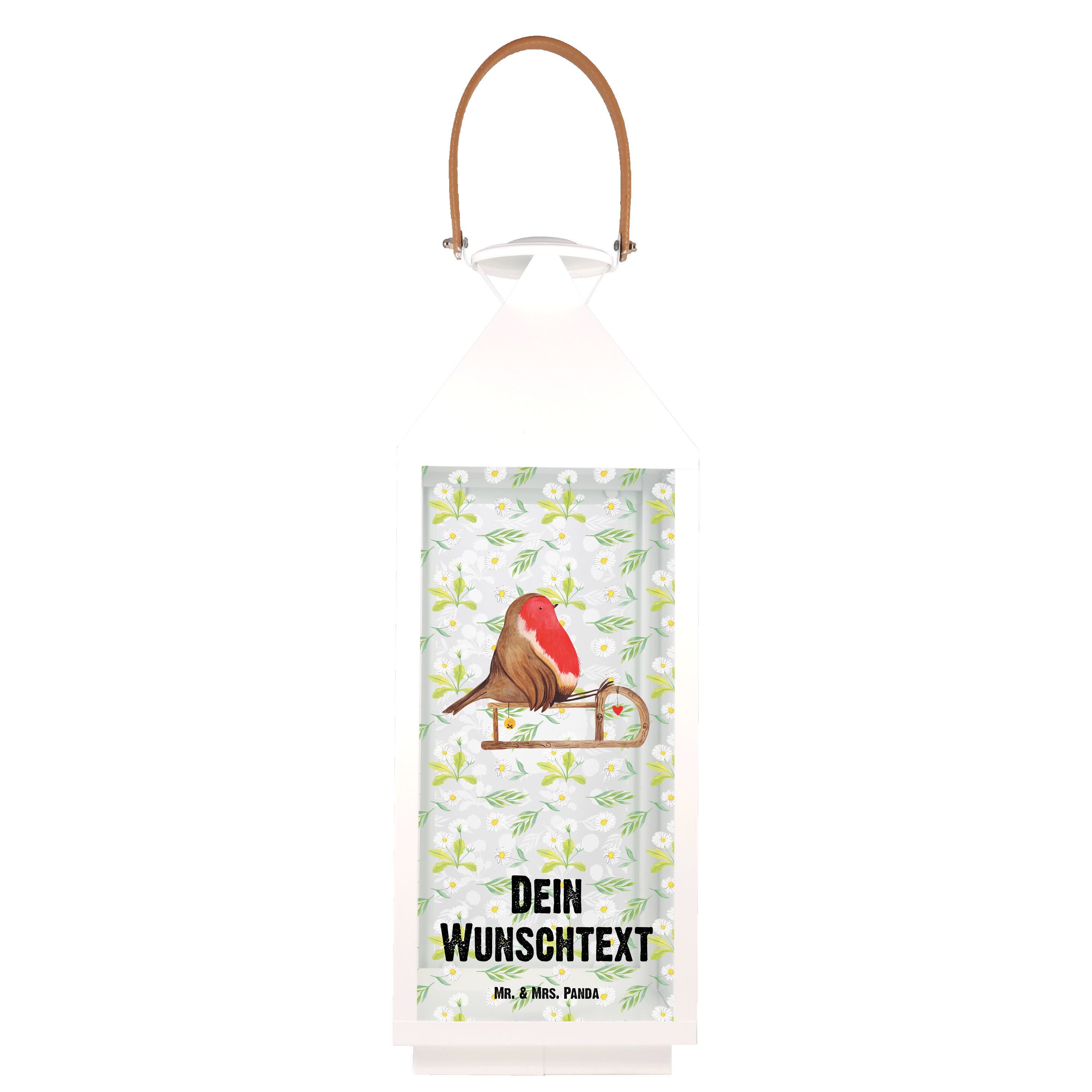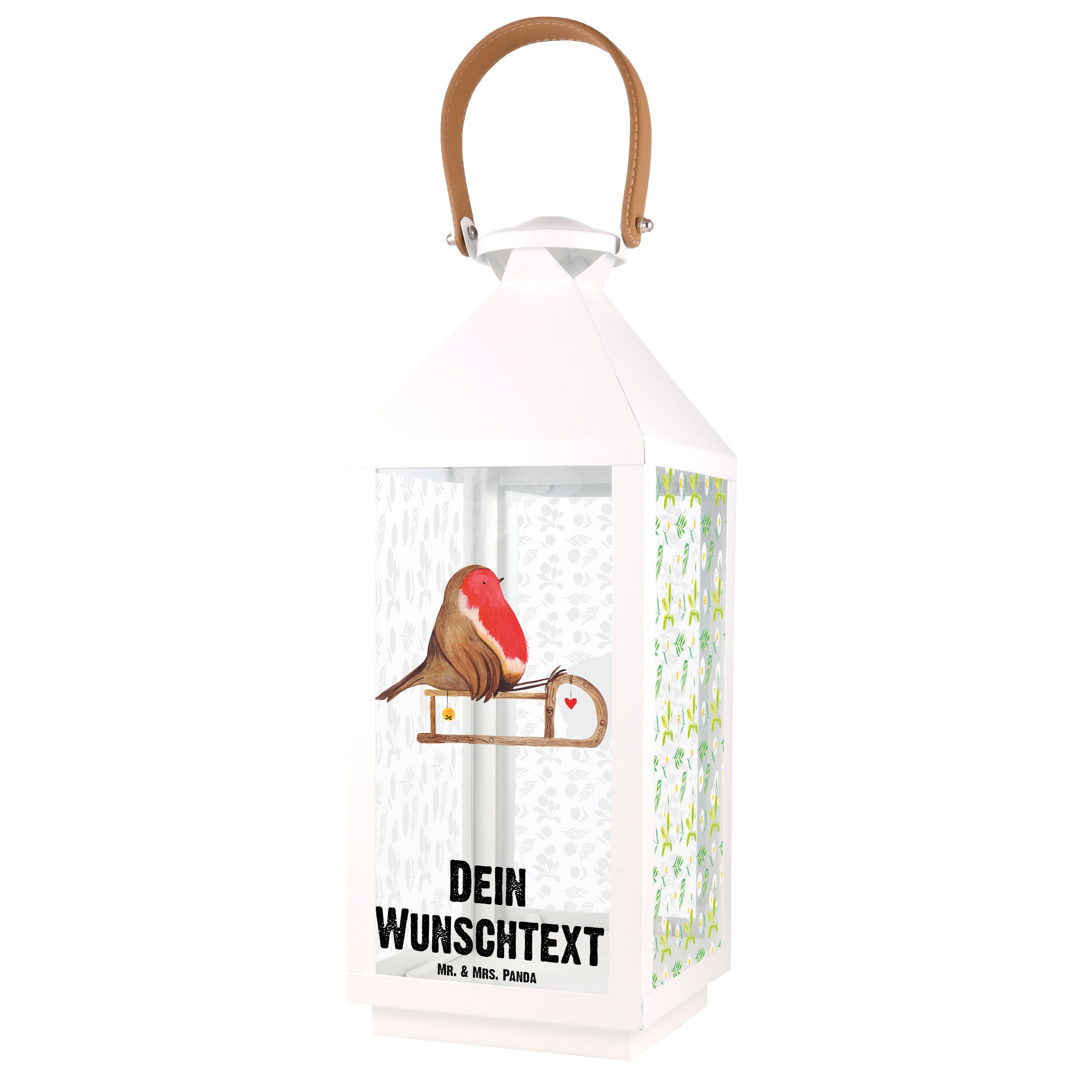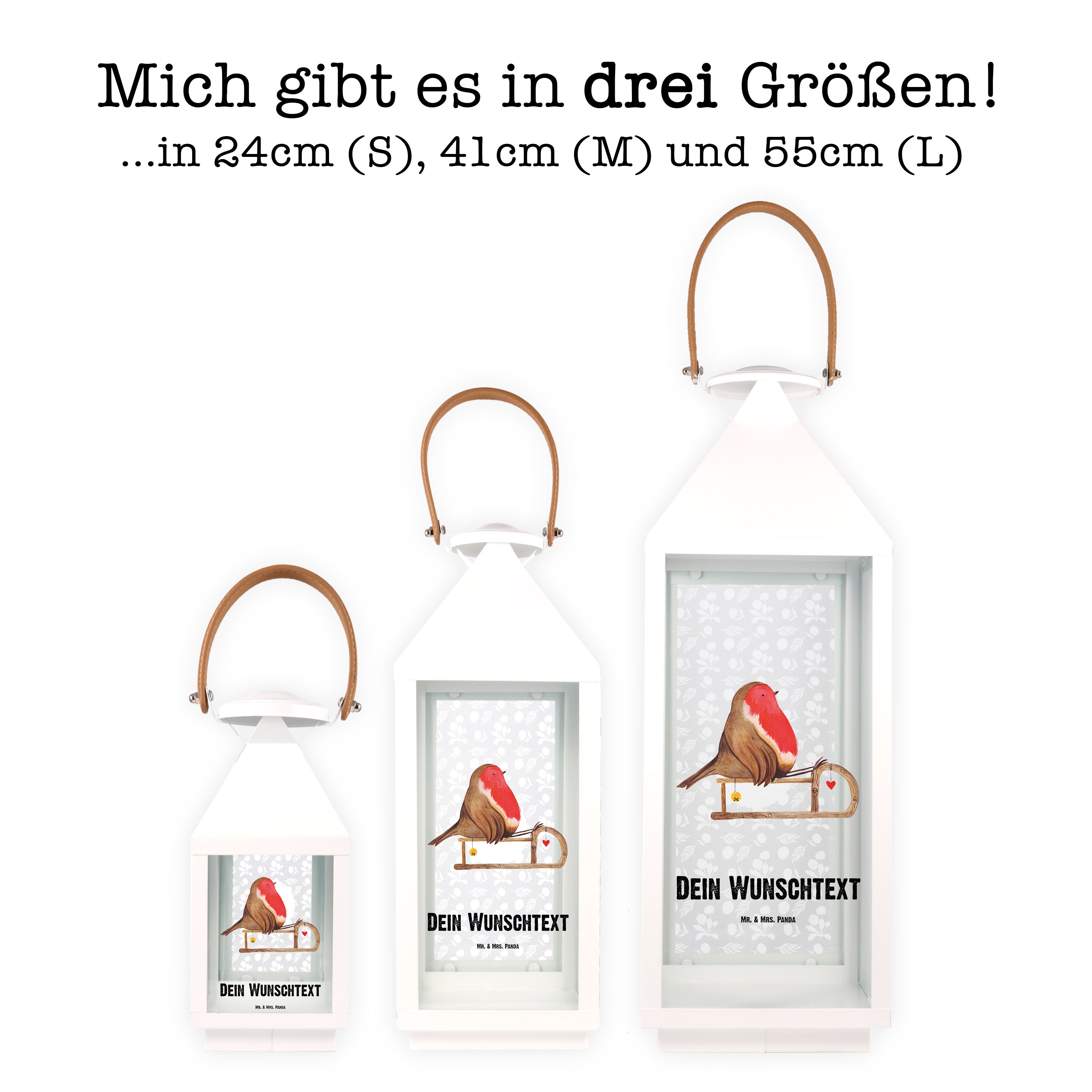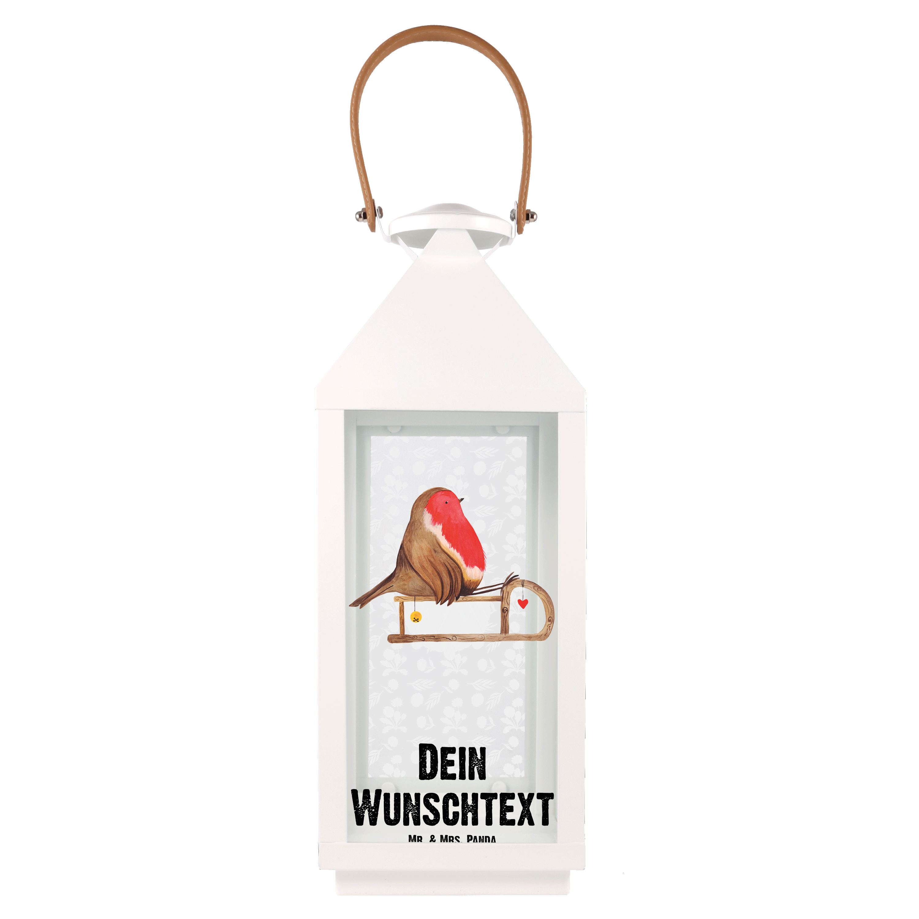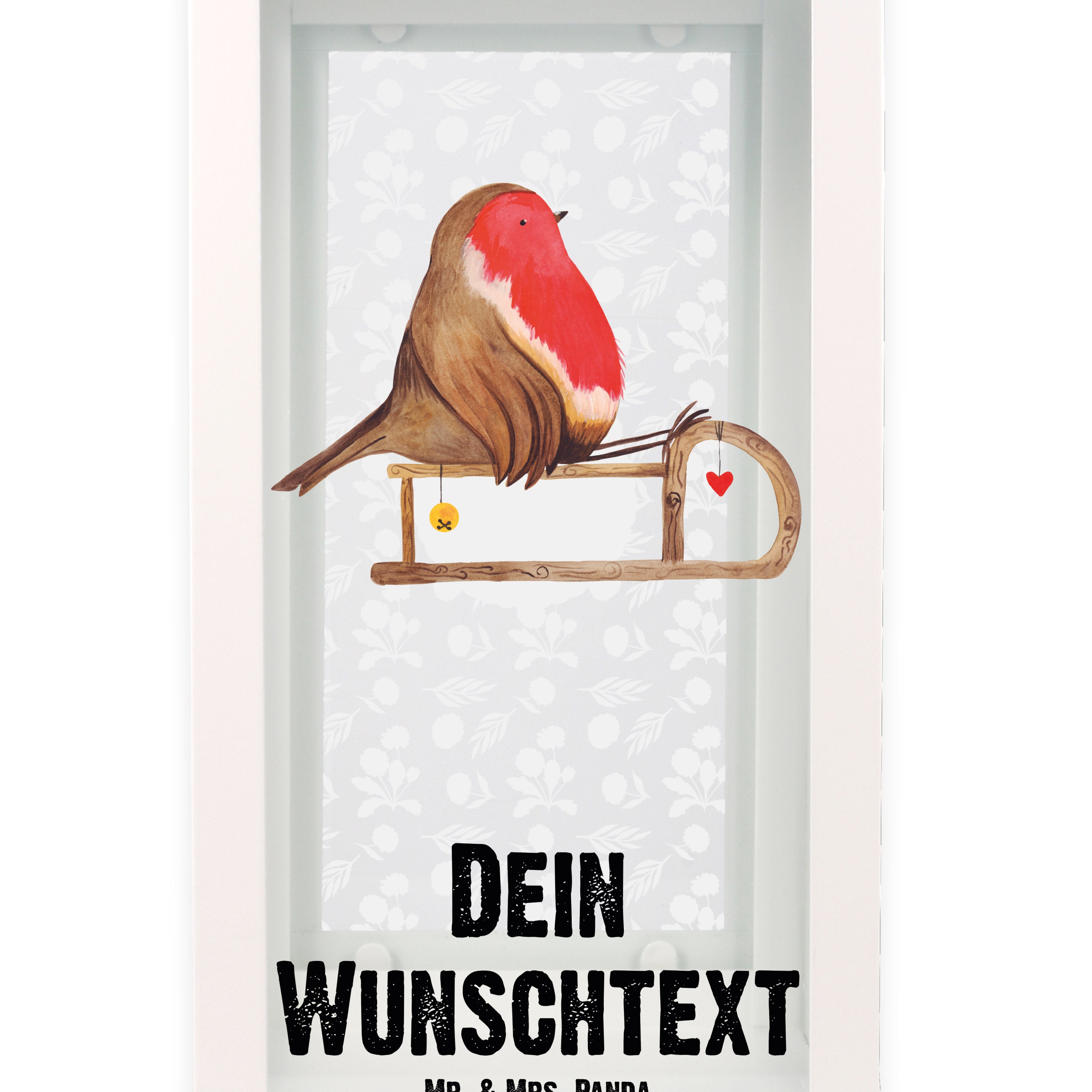 Personalisierte Deko Laterne Rotkehlchen Schlitten - S