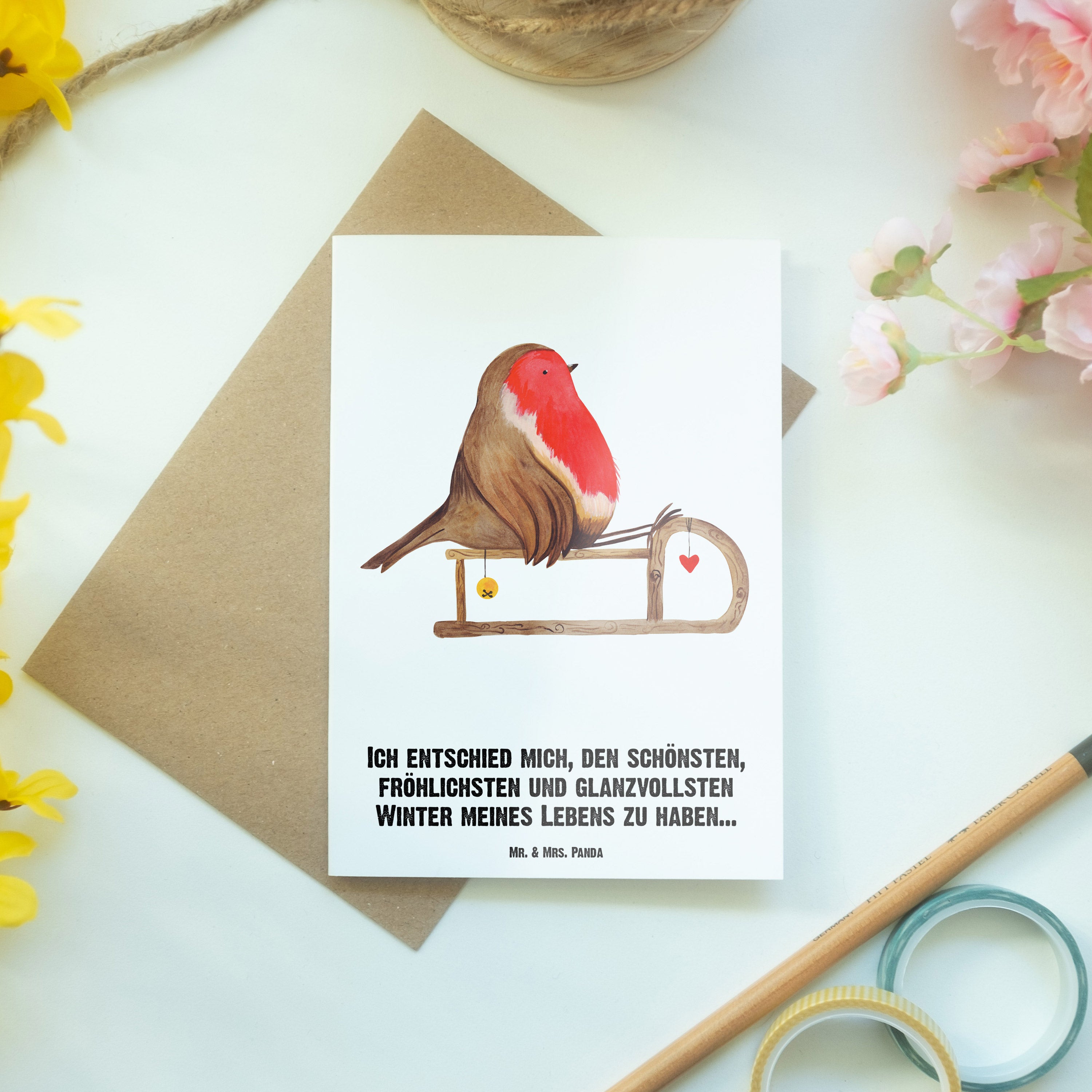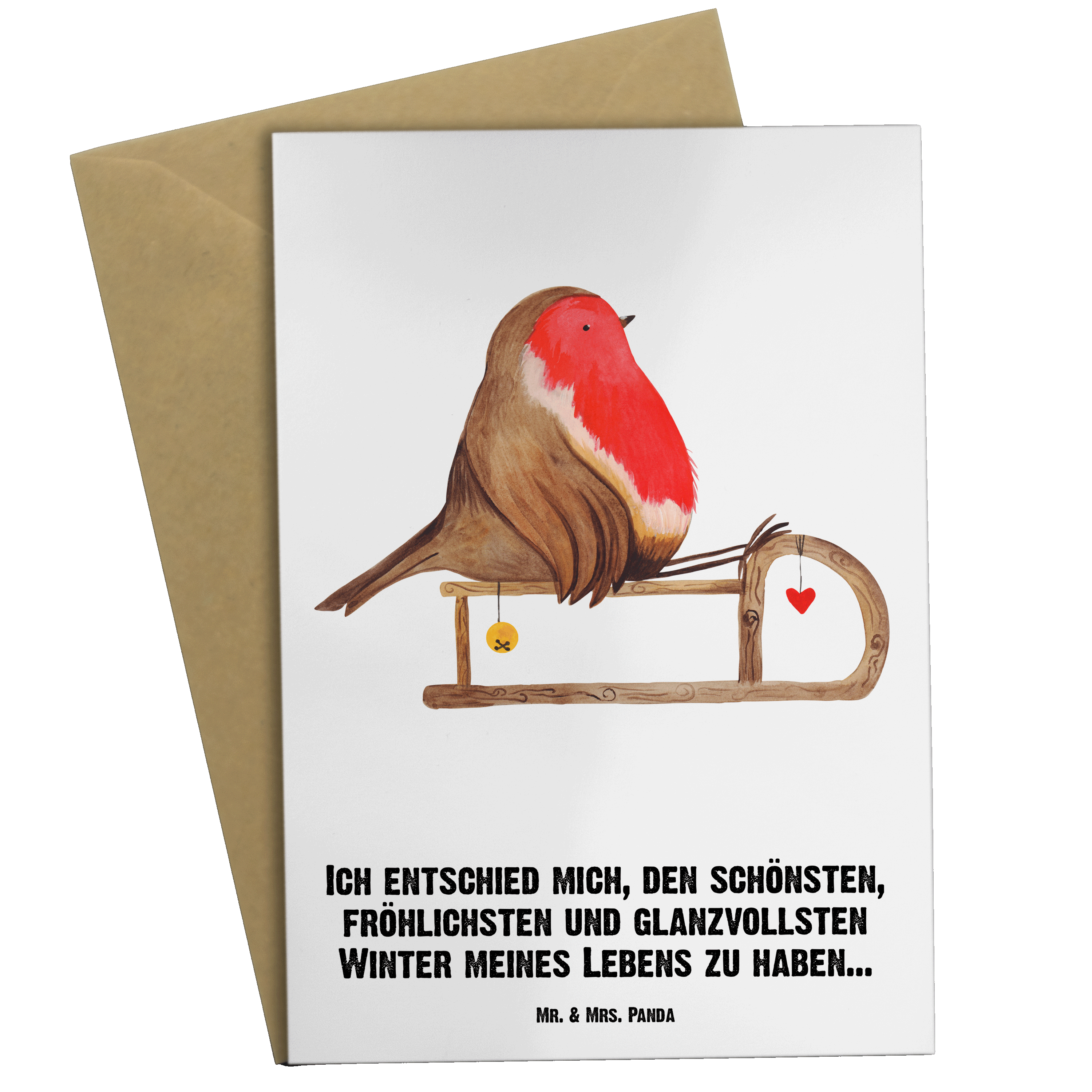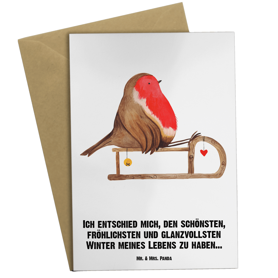 Personalisierte Grußkarte Rotkehlchen Schlitten