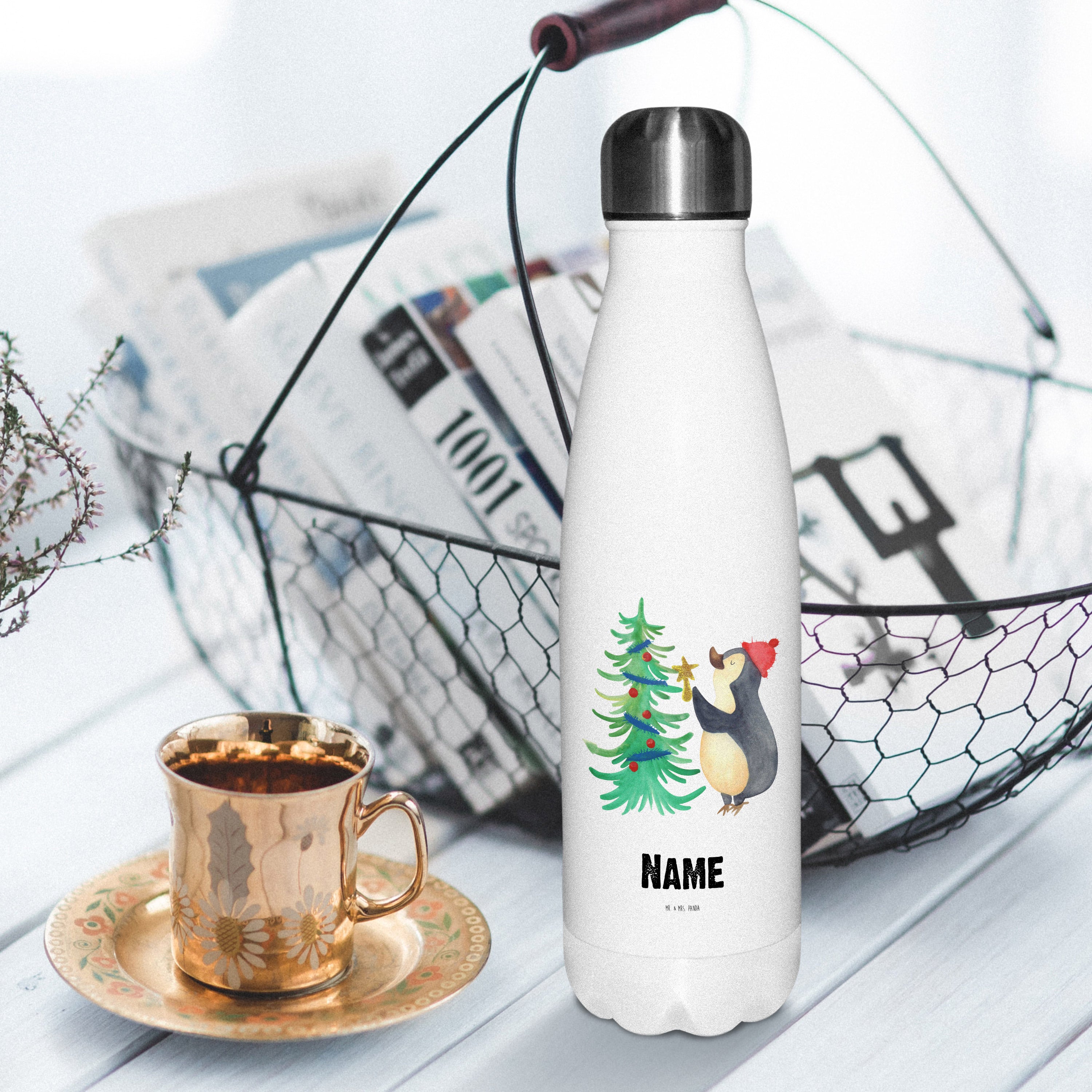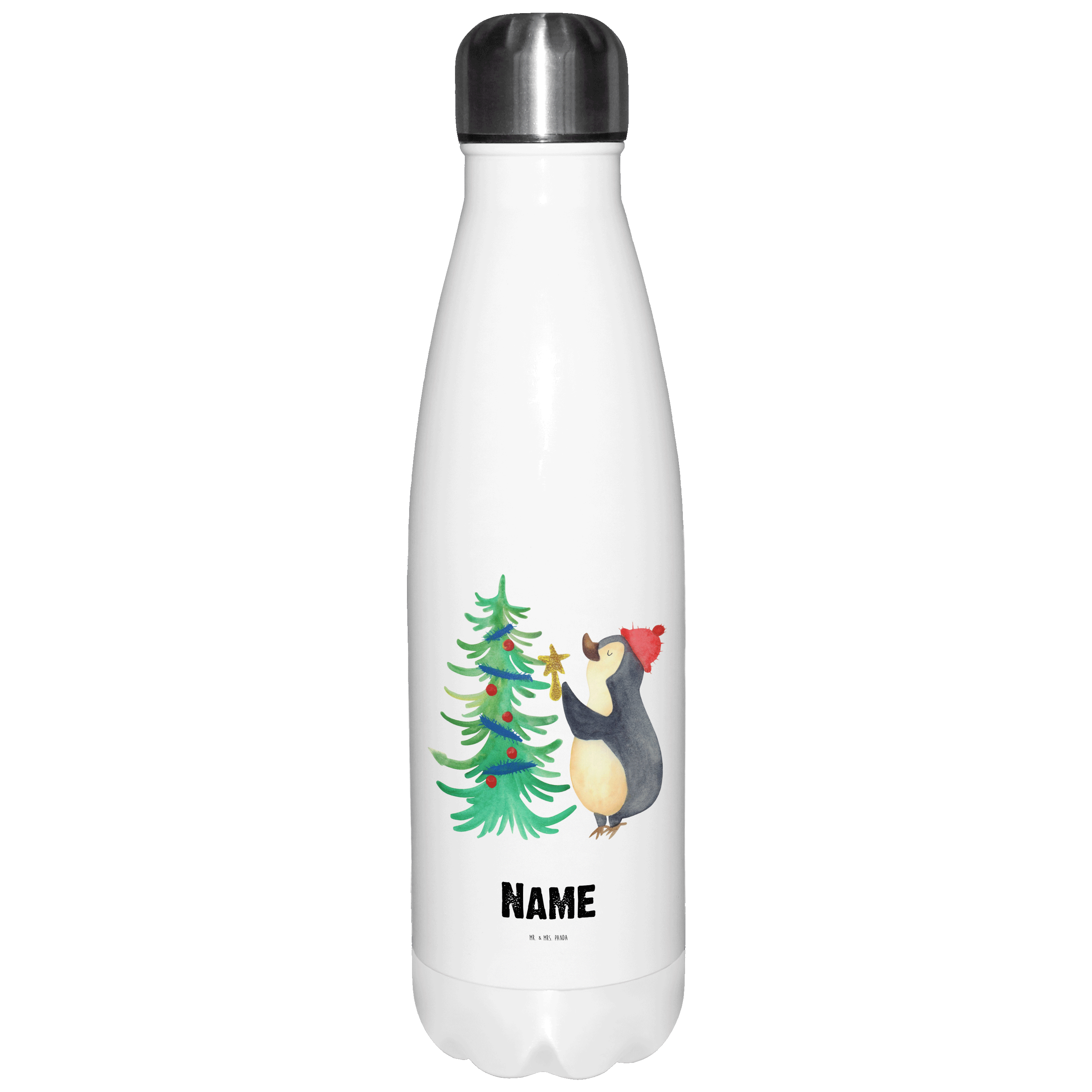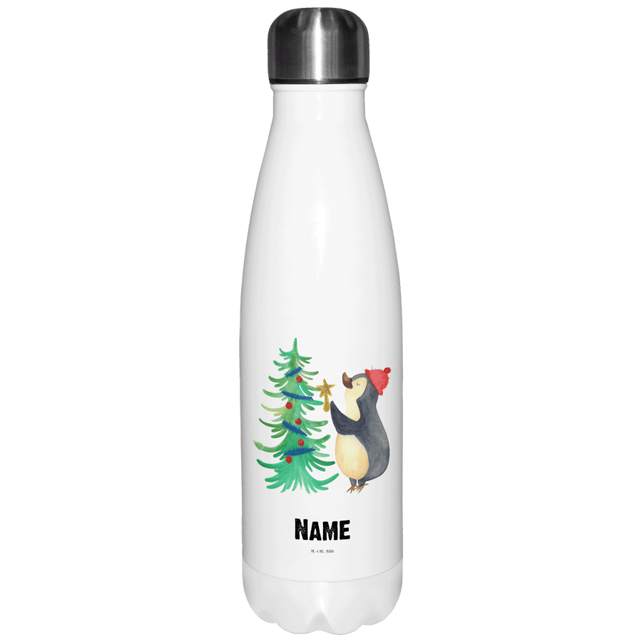 Personalisierte Thermosflasche Pinguin Weihnachtsbaum
