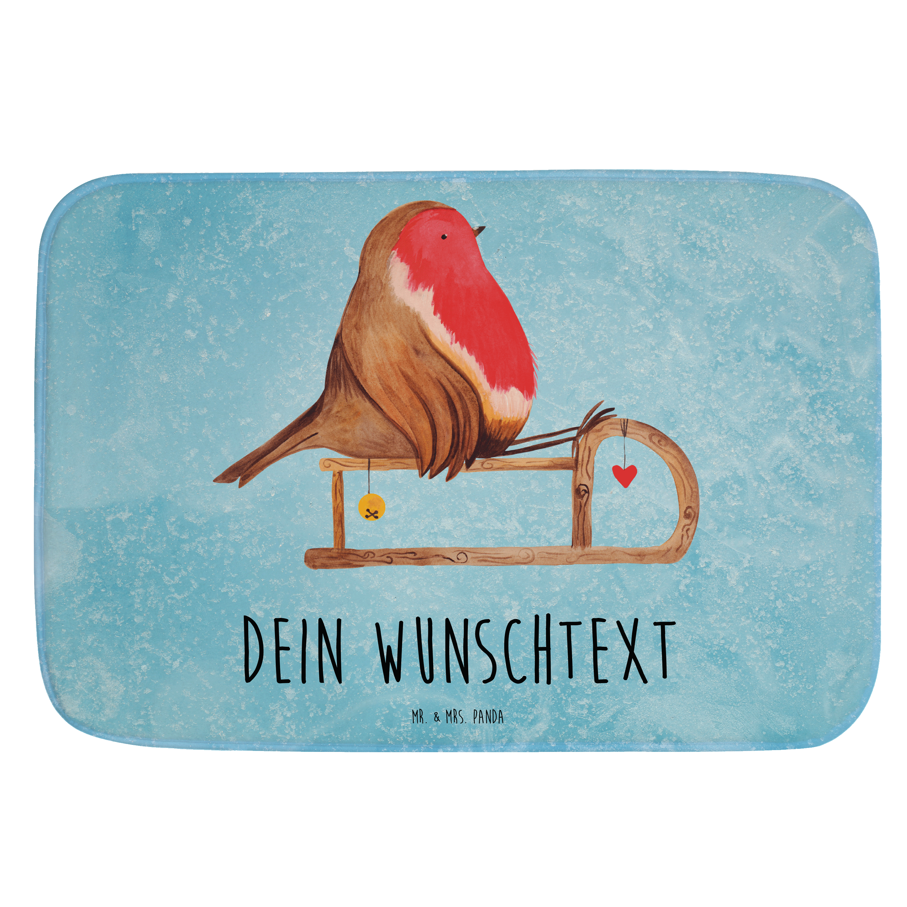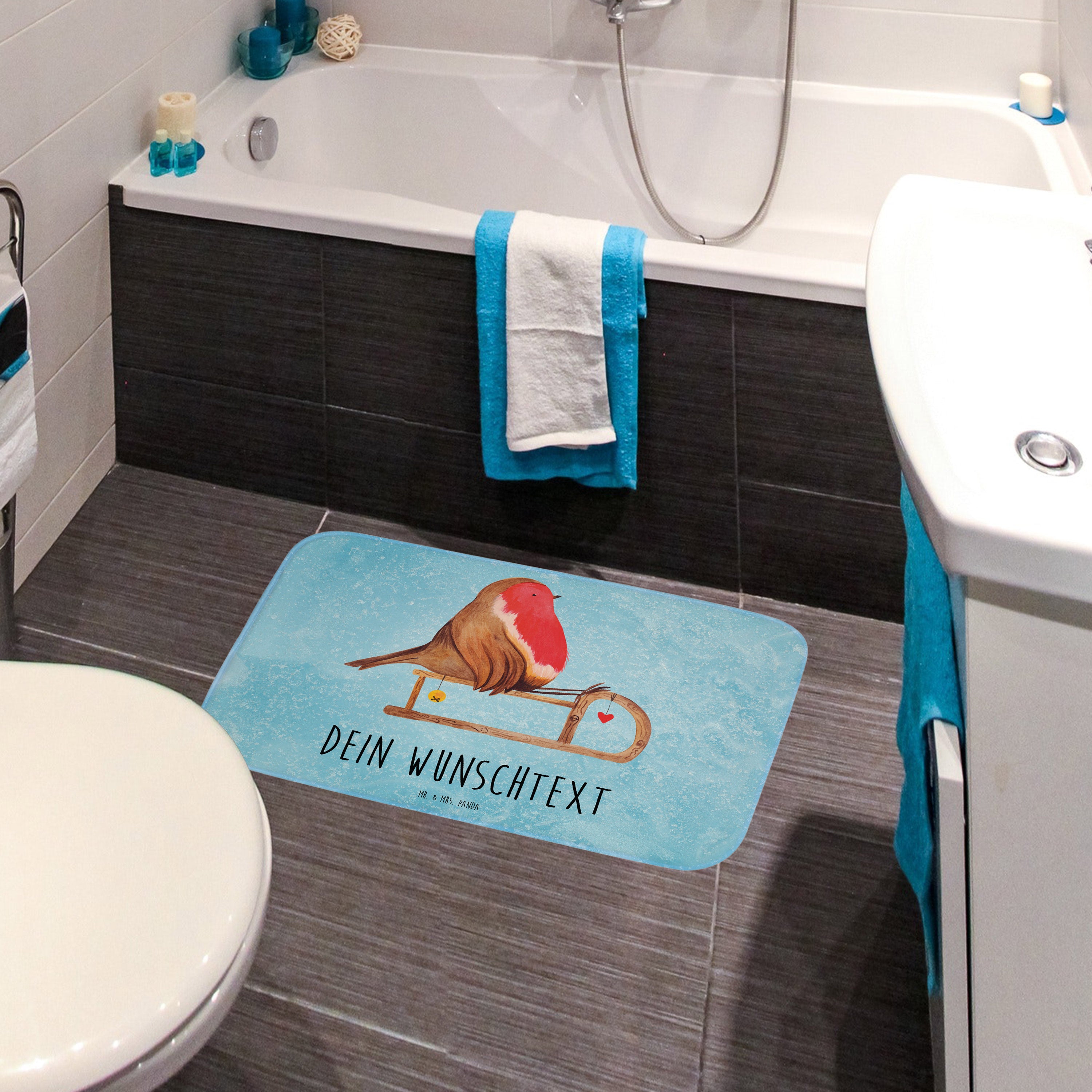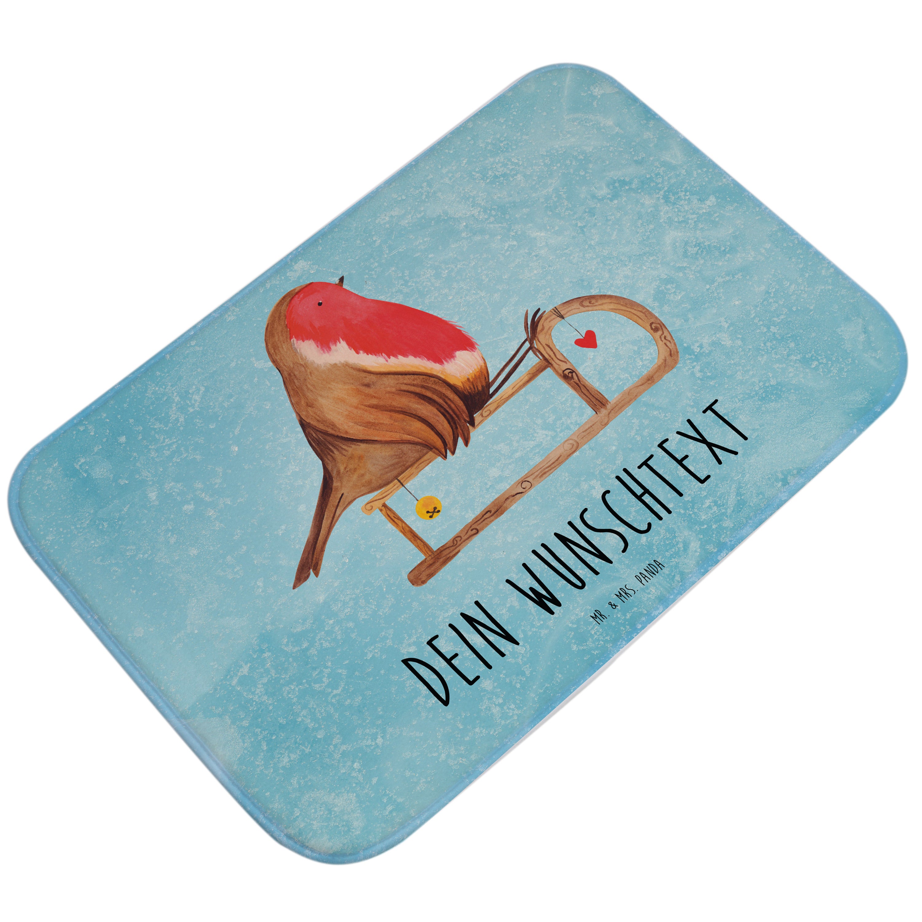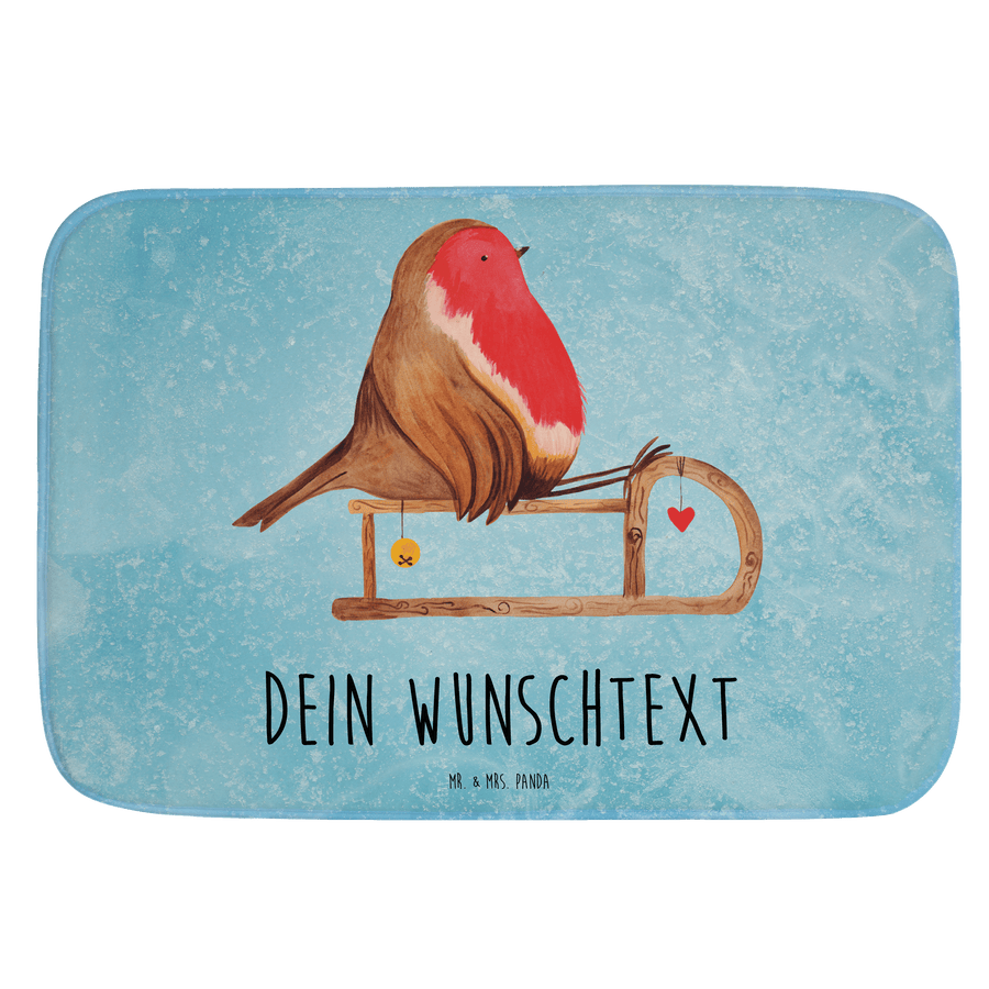 Personalisierter Badvorleger Rotkehlchen Schlitten