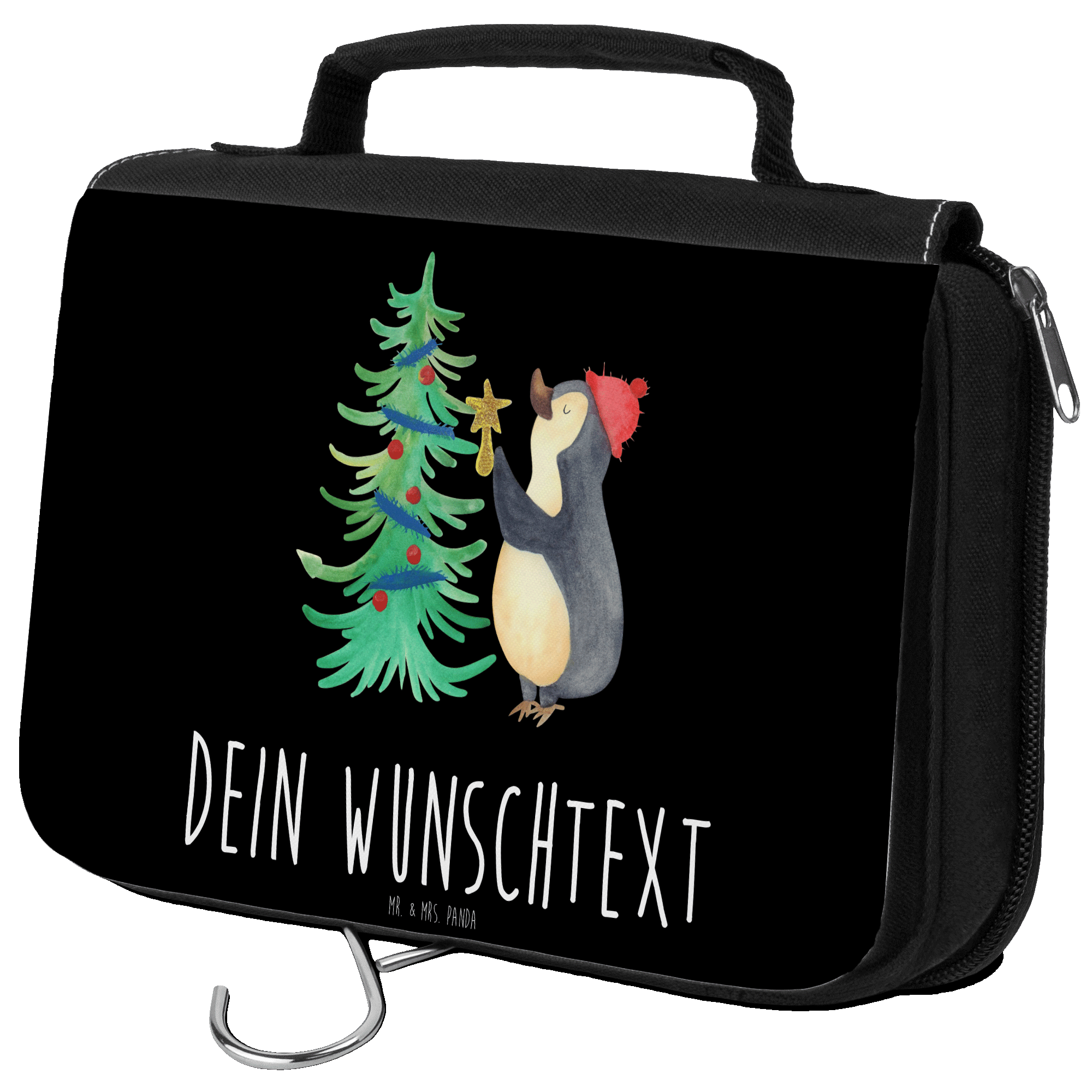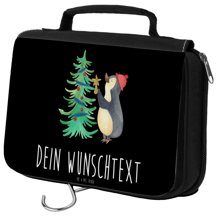 Personalisierter Kulturbeutel Pinguin Weihnachtsbaum - Schwarz