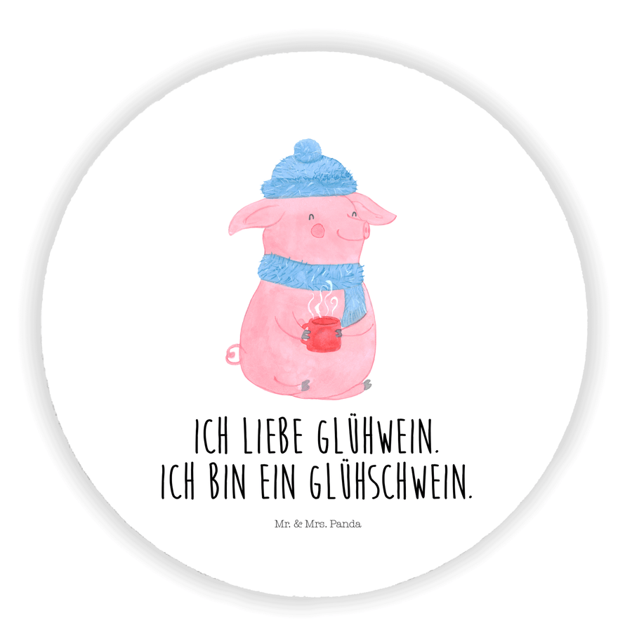 Rund Magnet Glühschwein - mit Spruch - Weiß