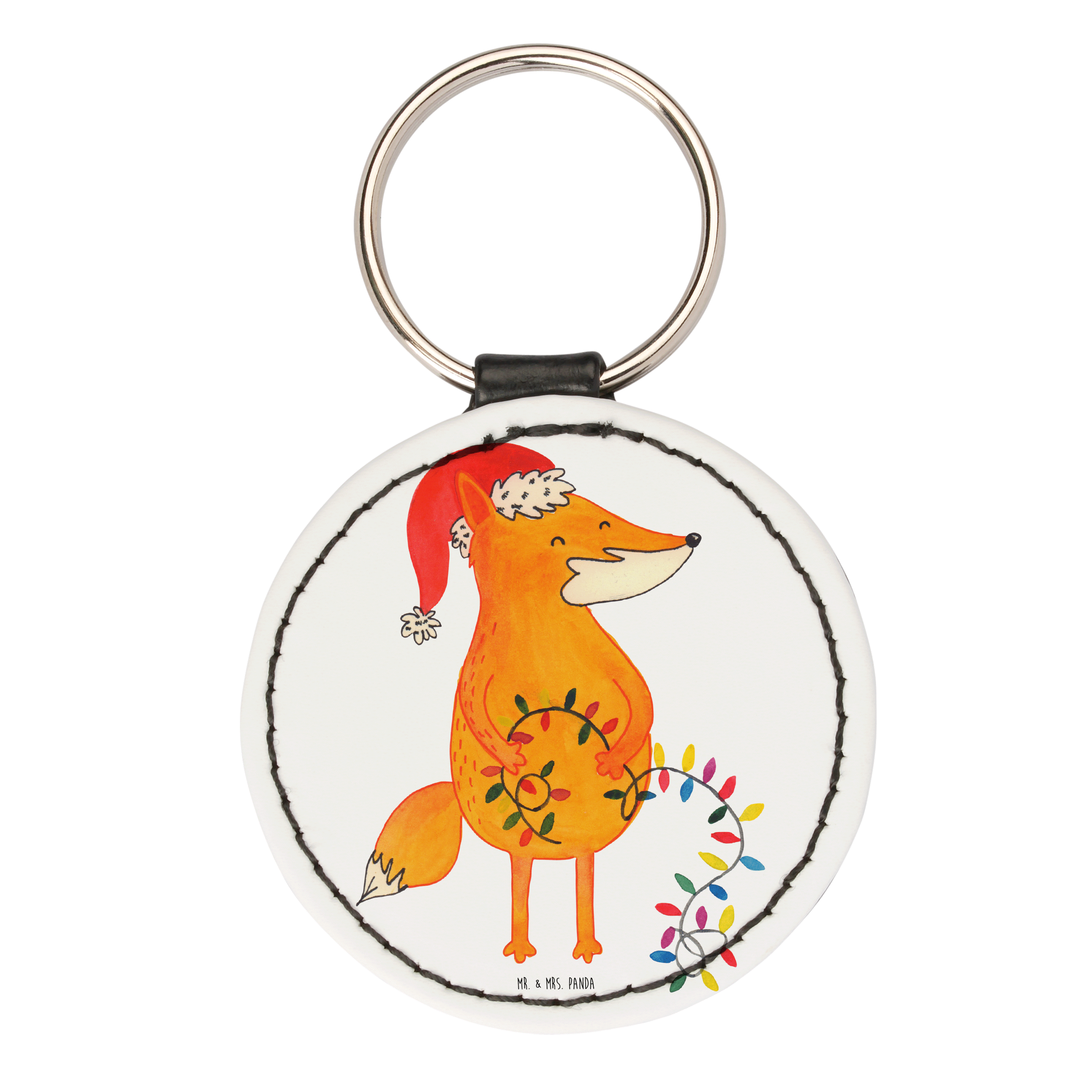 Rund Schlüsselanhänger Fuchs Weihnachten - Weiß