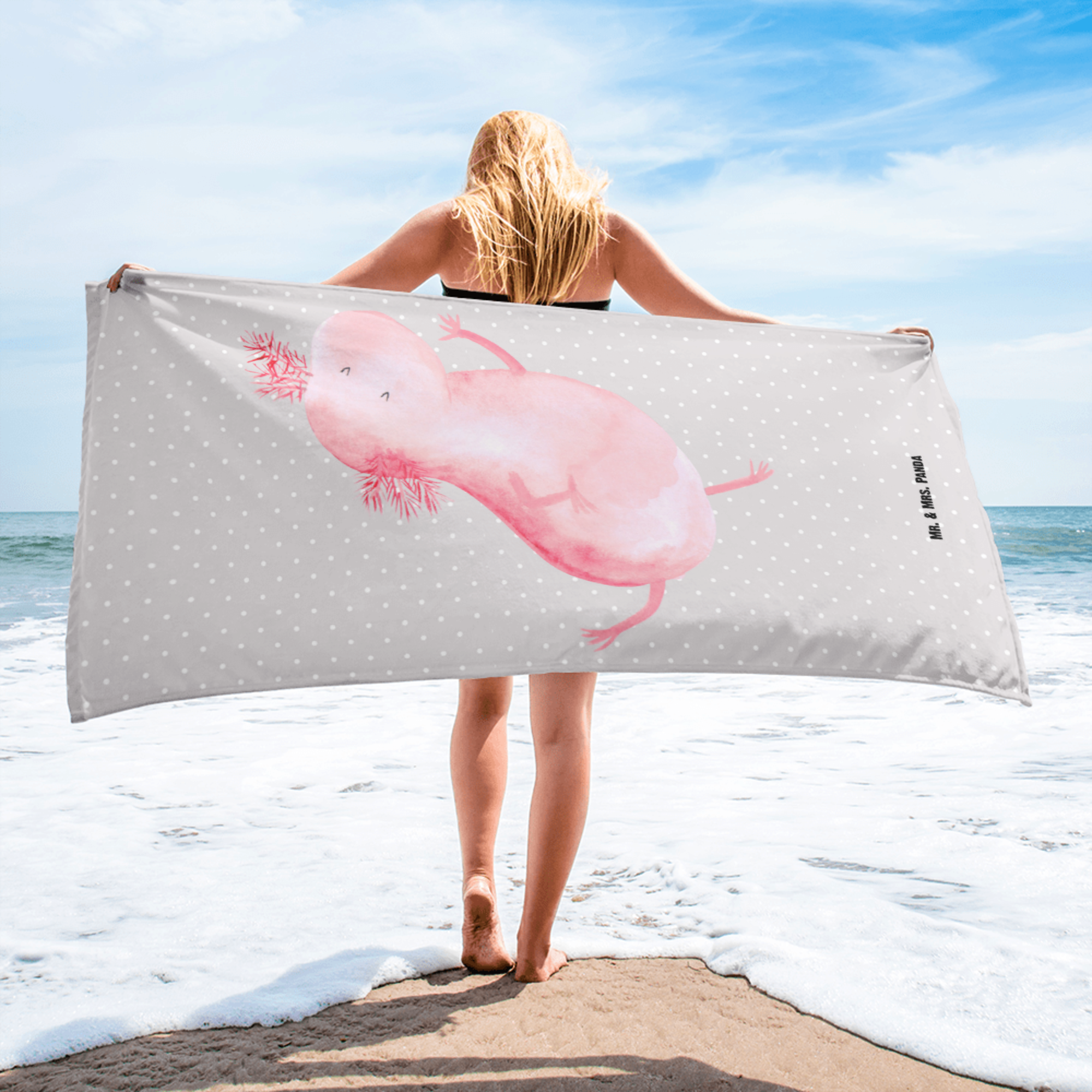 XL Badehandtuch Axolotl tanzt - mit Spruch - Grau Pastell