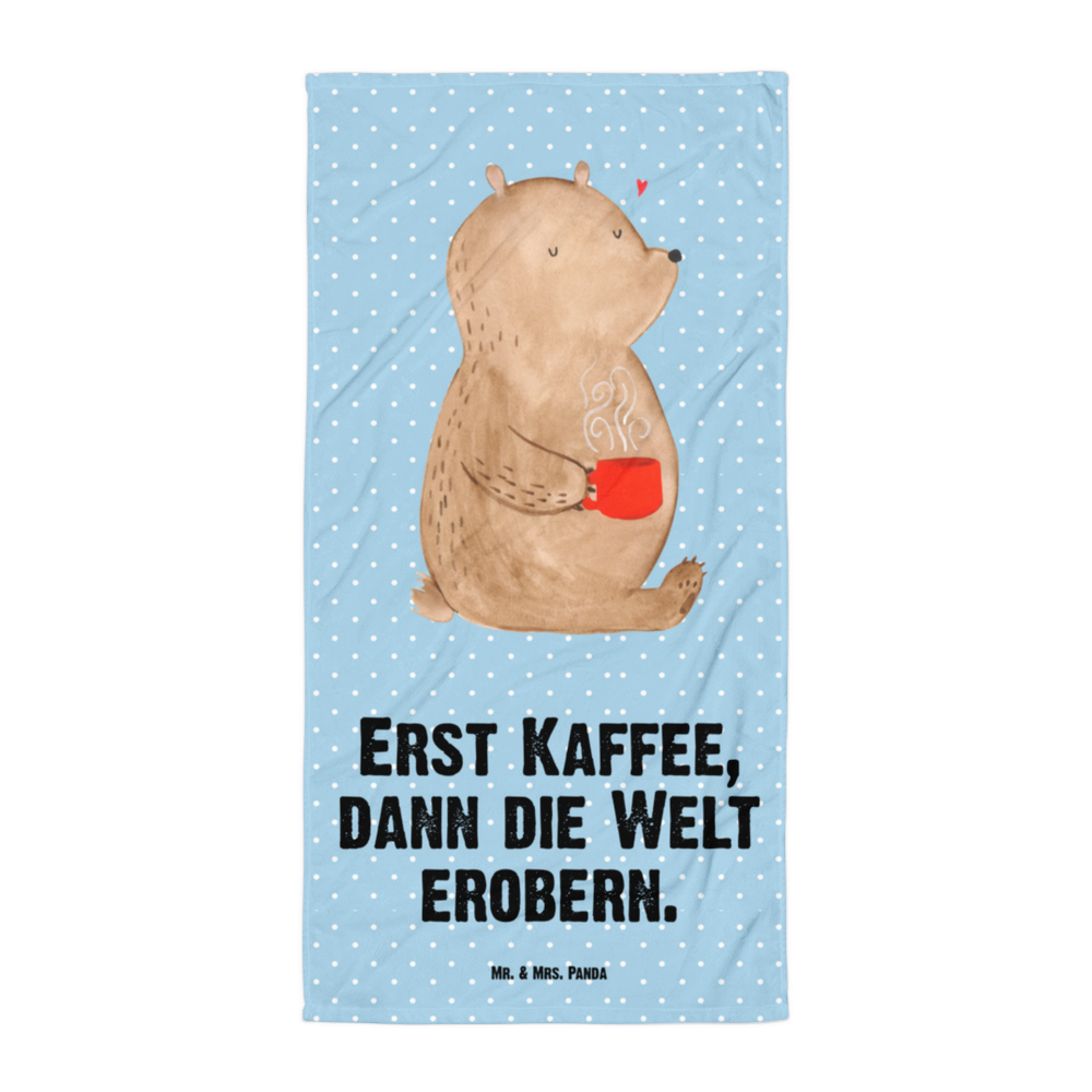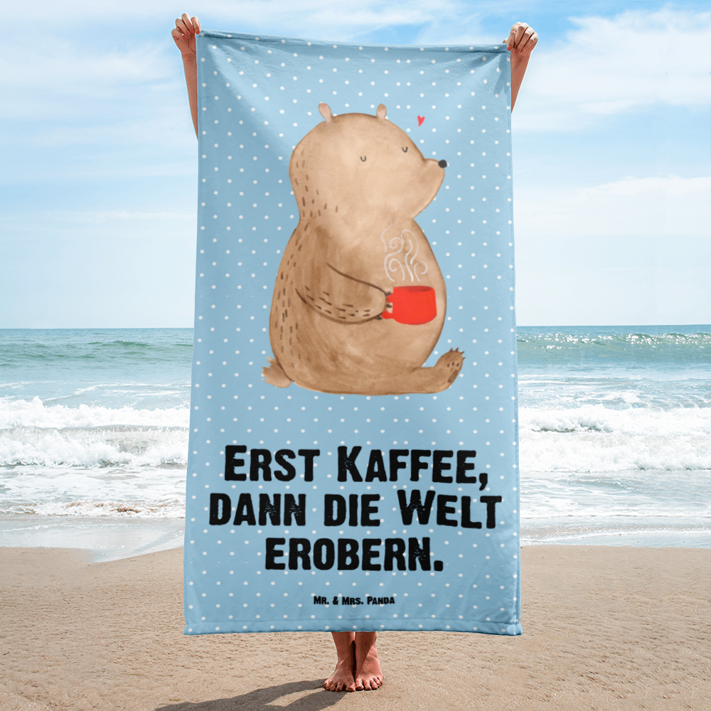 XL Badehandtuch Bär Kaffee - mit Spruch - Blau Pastell