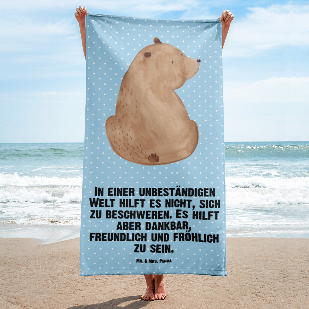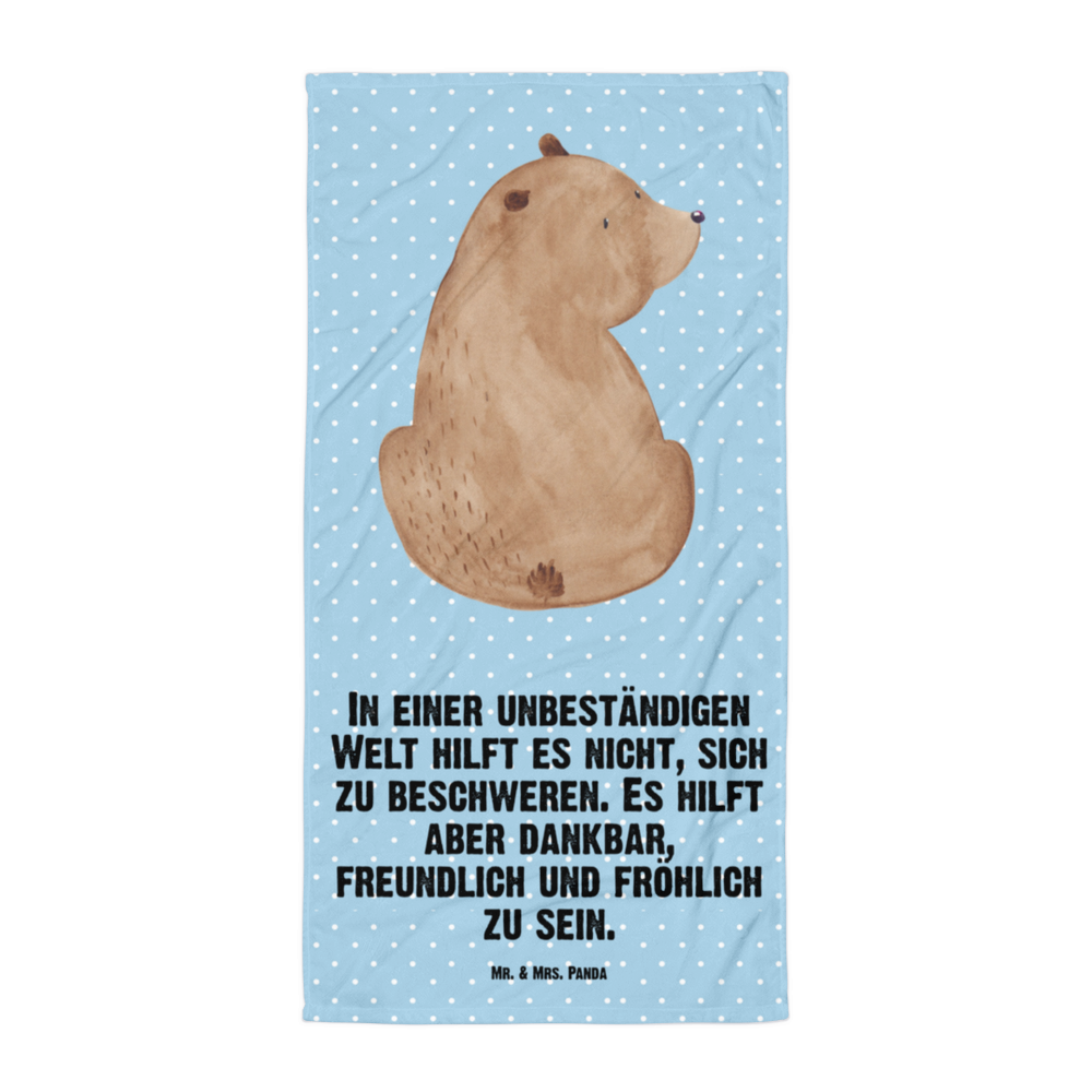XL Badehandtuch Bär Schulterblick - mit Spruch - Blau Pastell