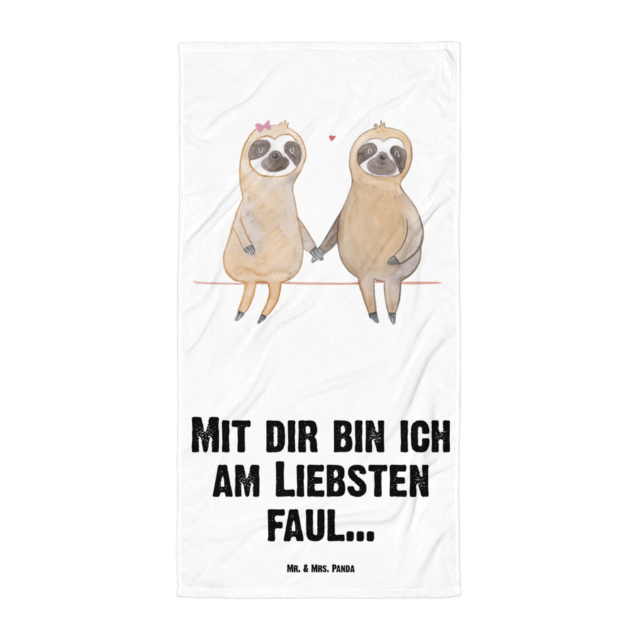 XL Badehandtuch Faultier Pärchen - mit Spruch - Weiß