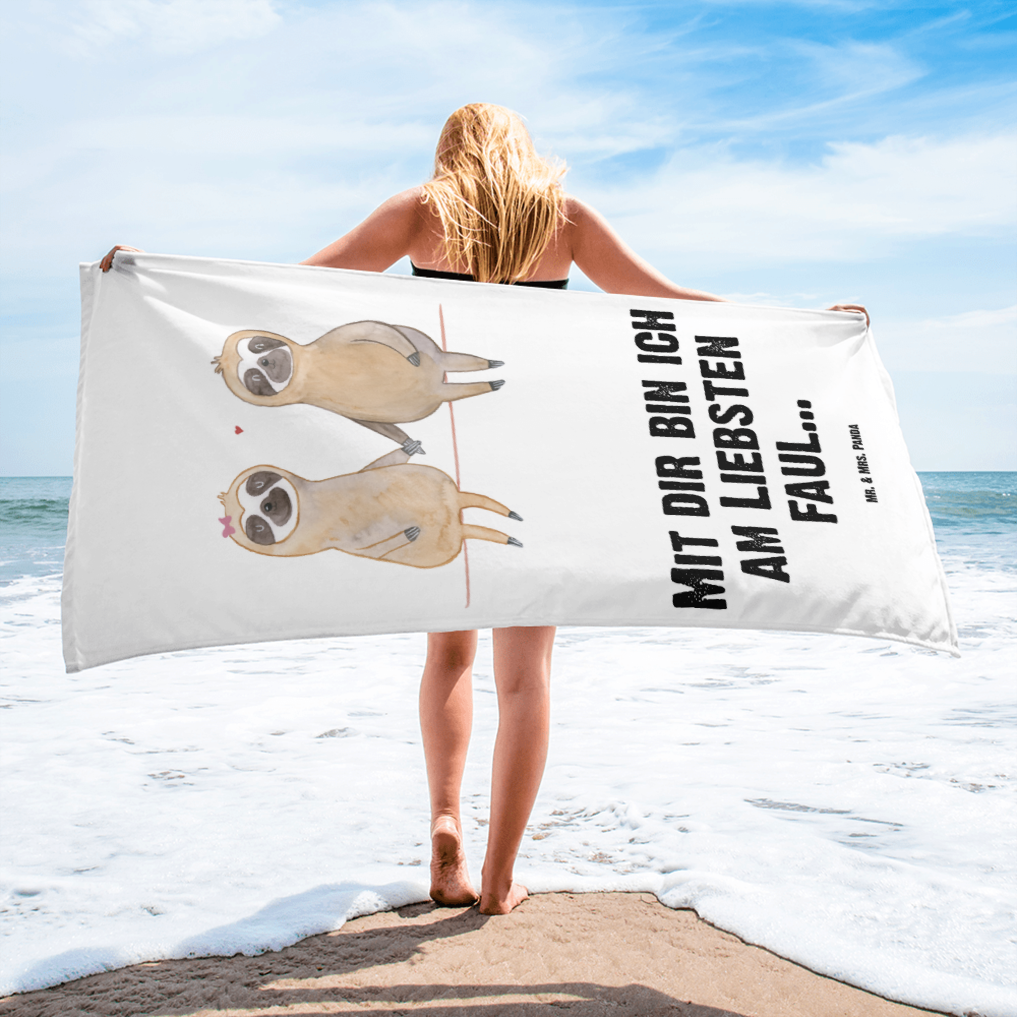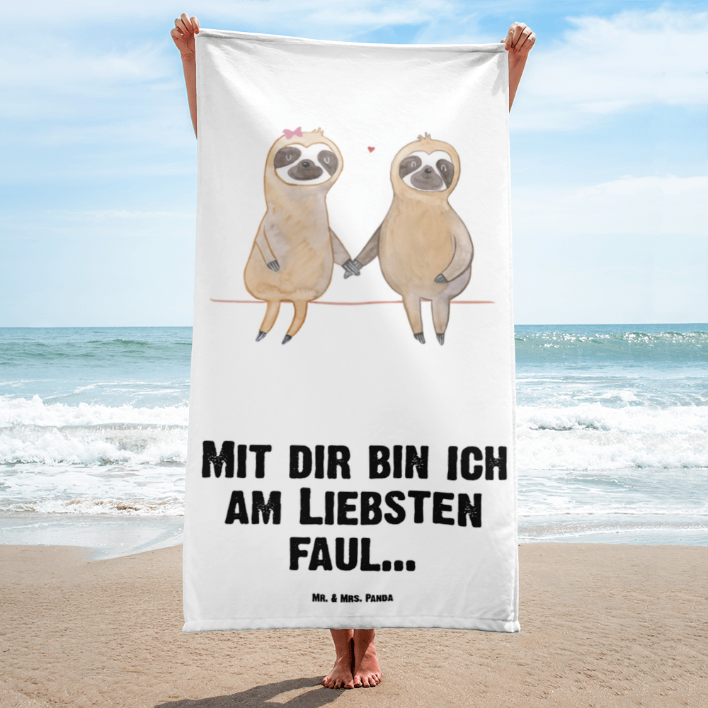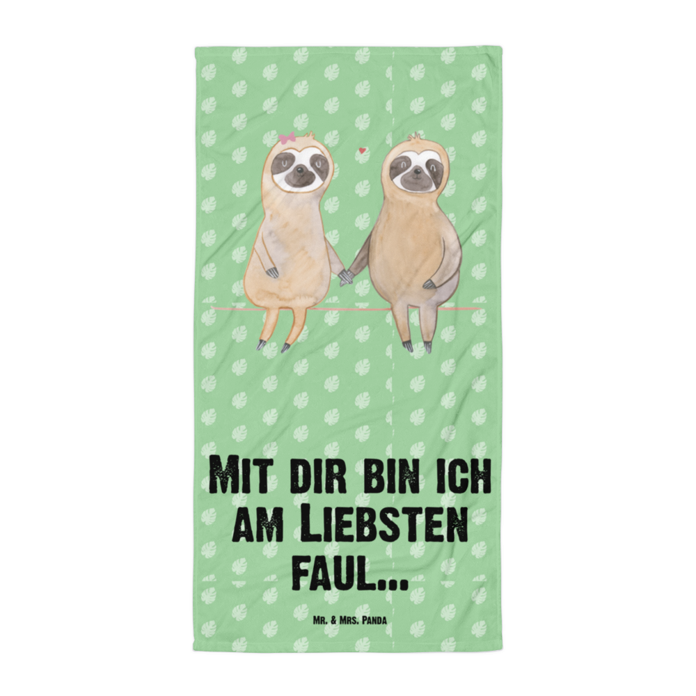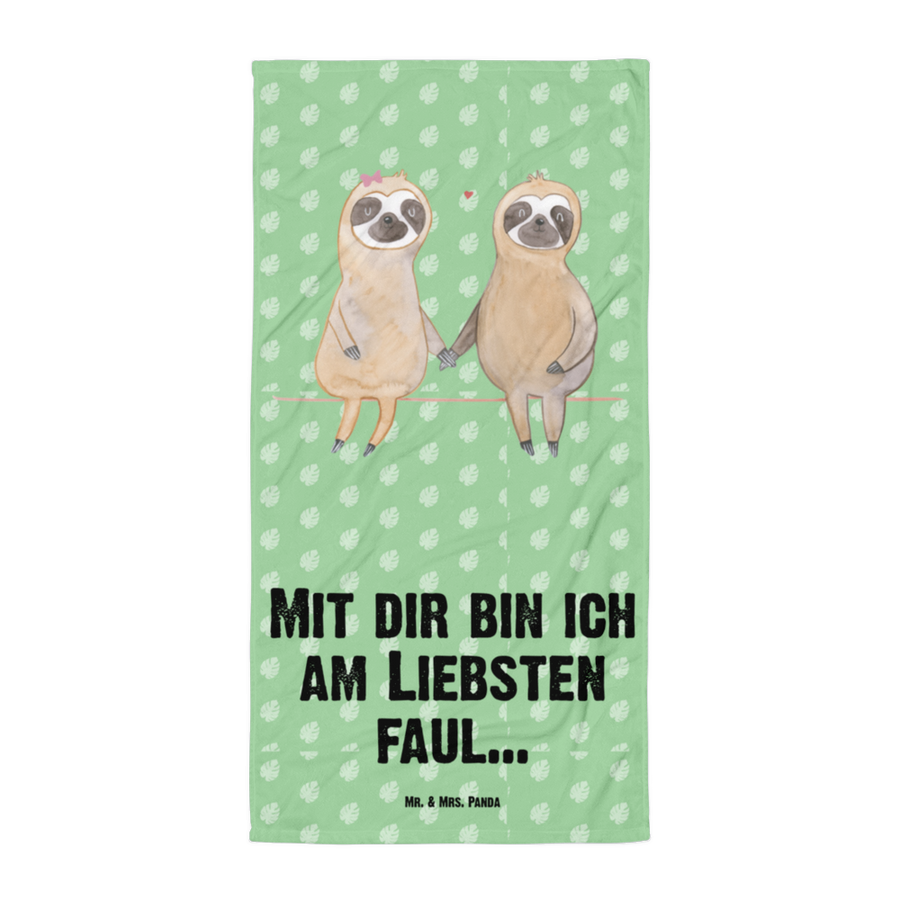 XL Badehandtuch Faultier Pärchen - mit Spruch - Tropengrün