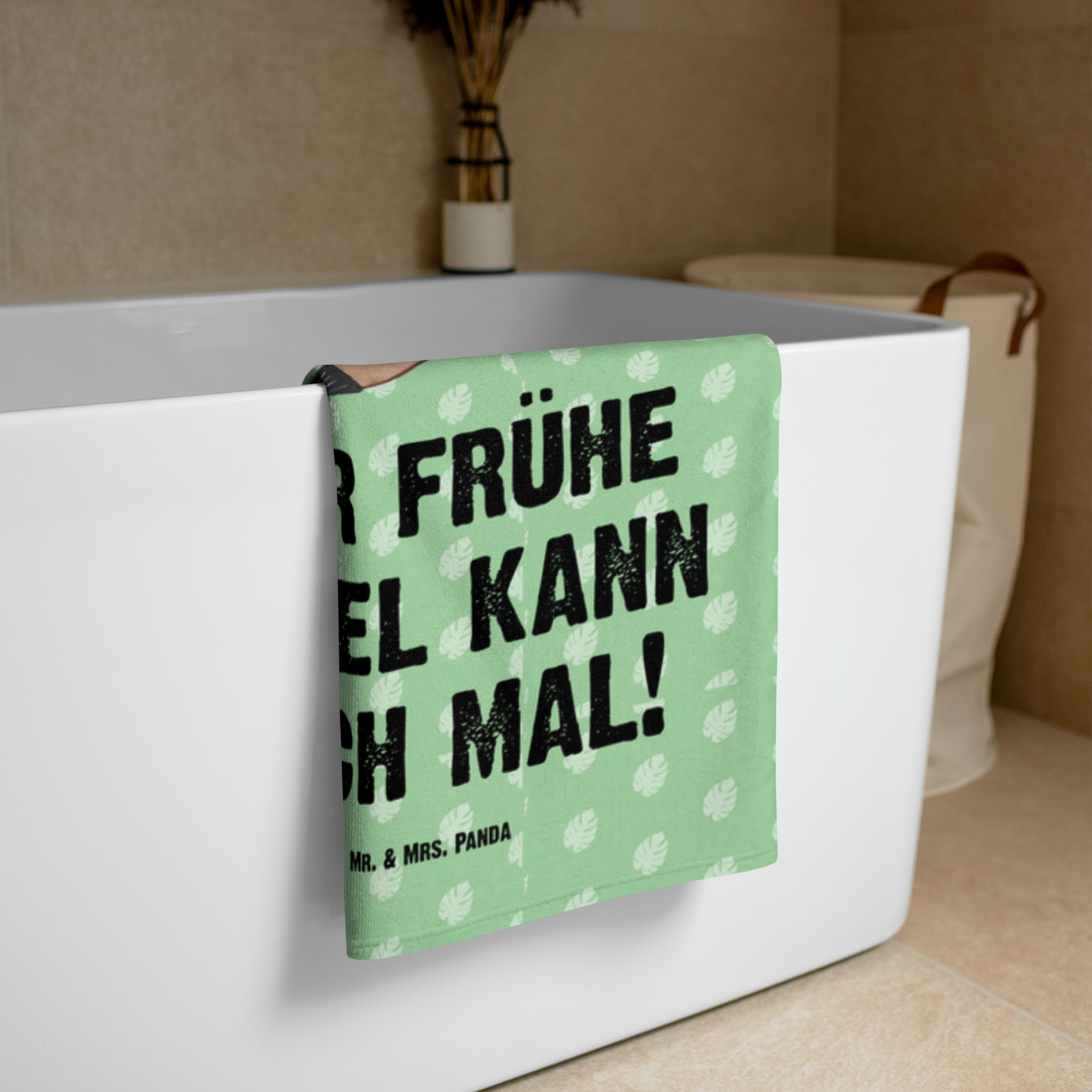 XL Badehandtuch Faultier Vogel zeigen - mit Spruch - Tropengrün