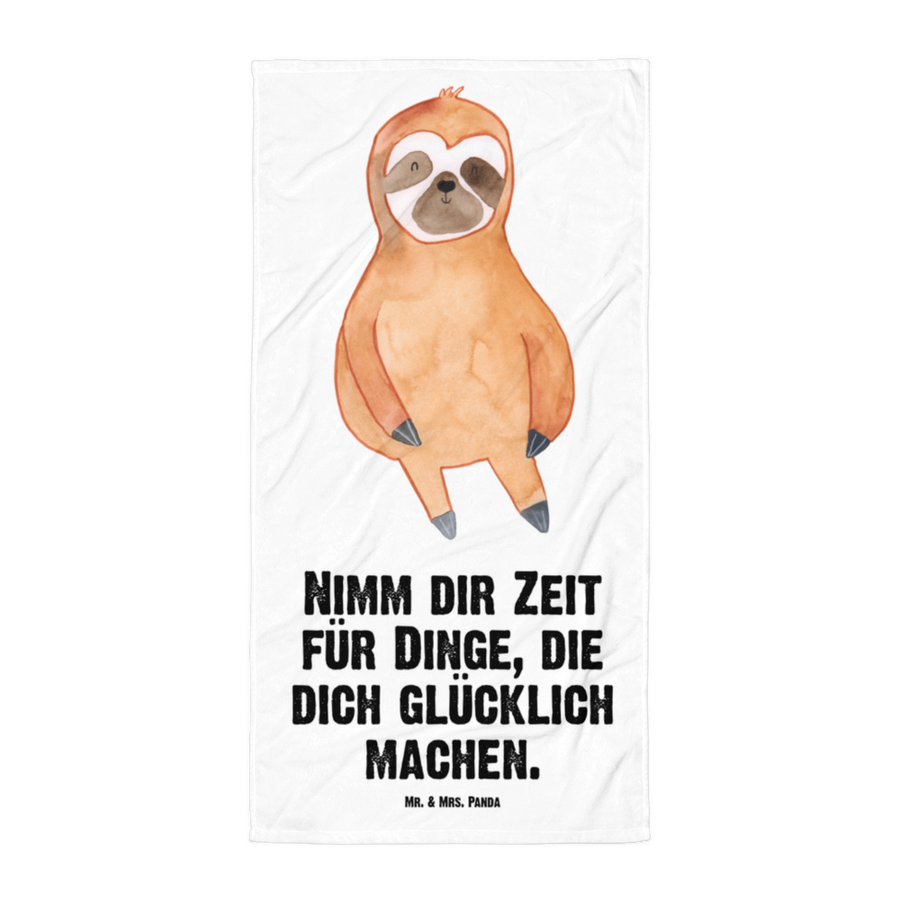 XL Badehandtuch Faultier Zufrieden - mit Spruch - Weiß