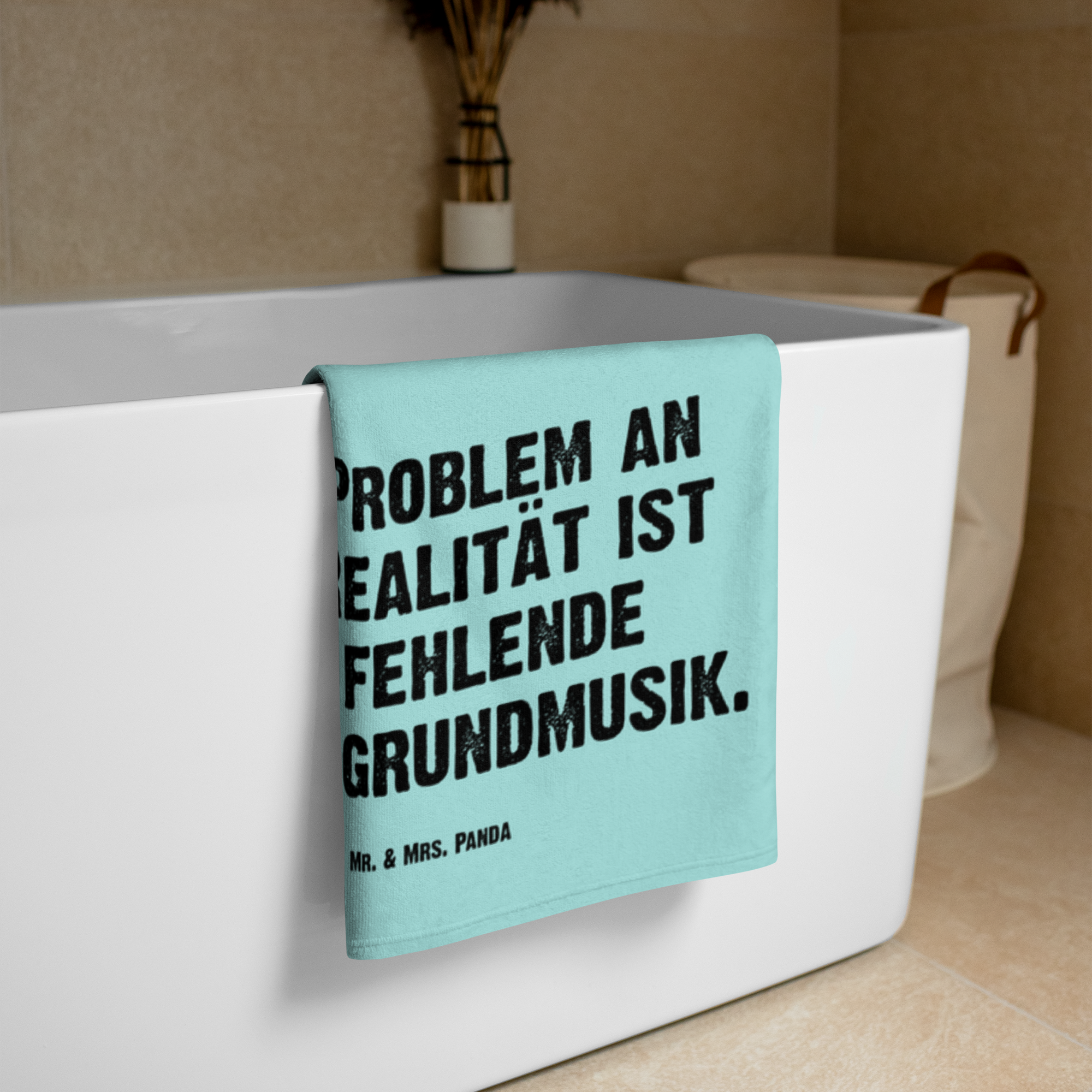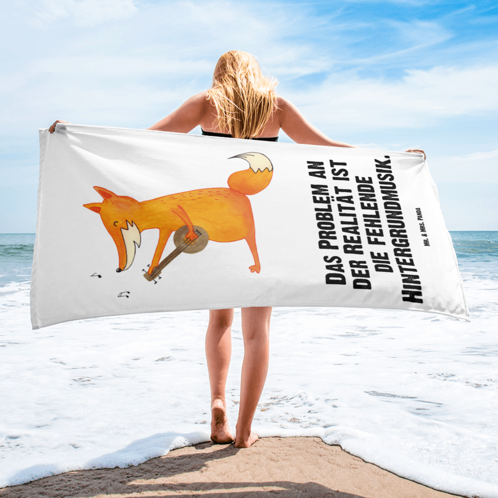 XL Badehandtuch Fuchs Gitarre - mit Spruch - Türkis Pastell