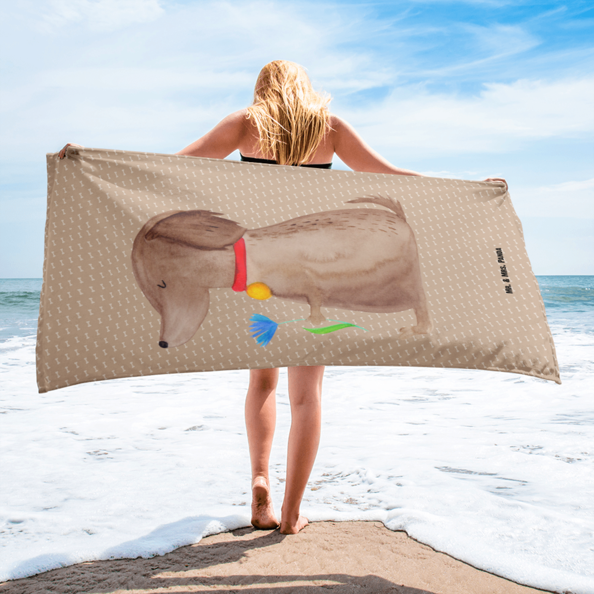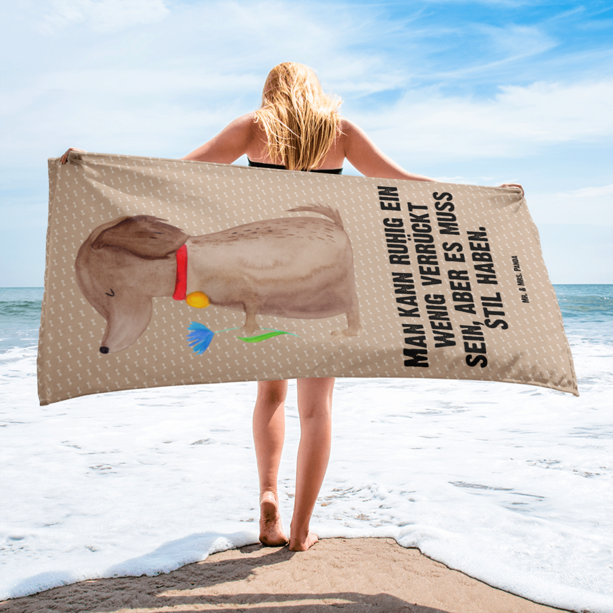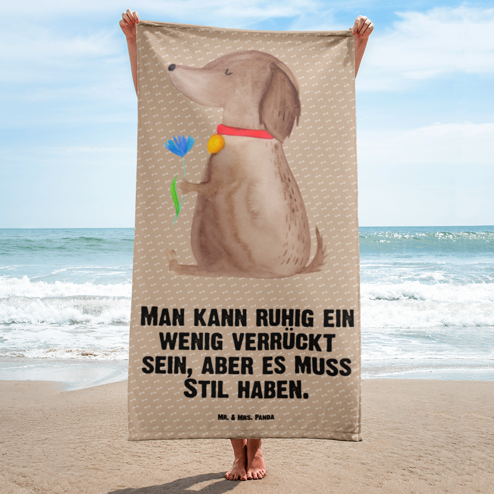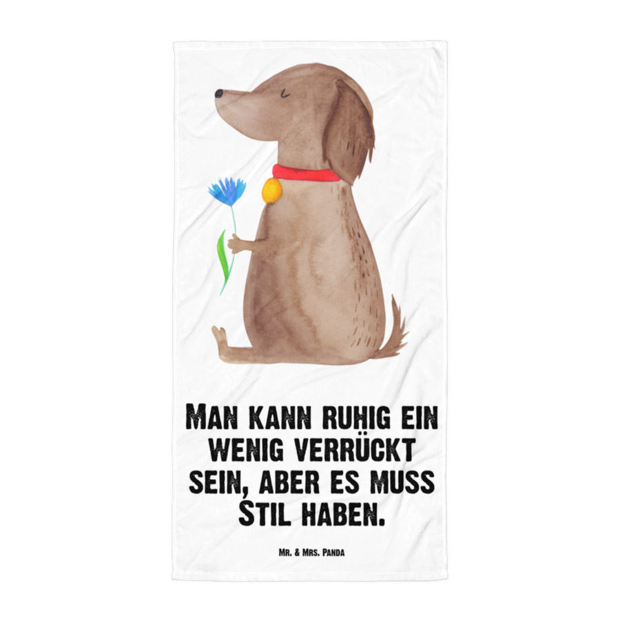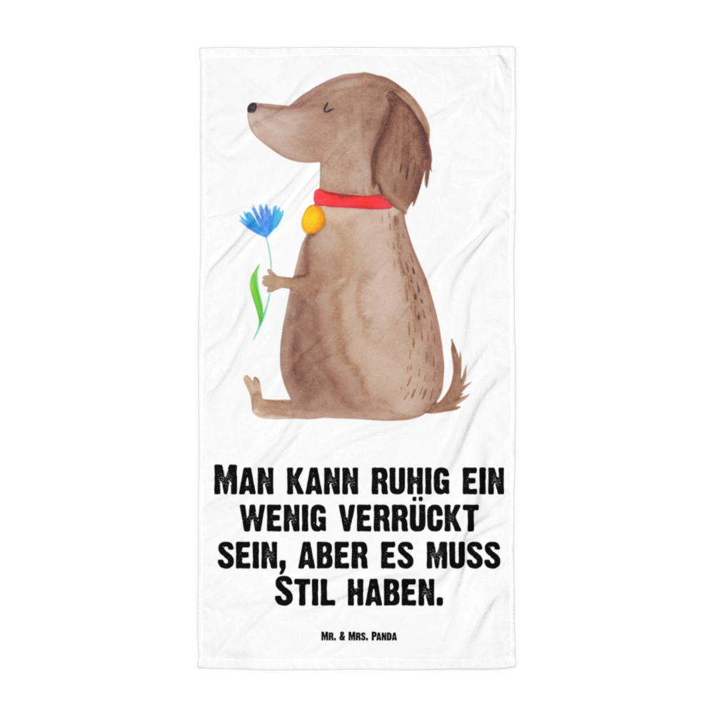 XL Badehandtuch Hund Blume - mit Spruch - Weiß