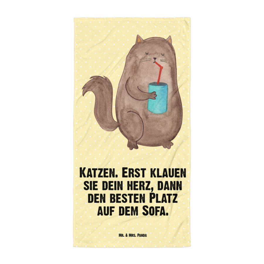 XL Badehandtuch Katze Dose - mit Spruch - Gelb Pastell