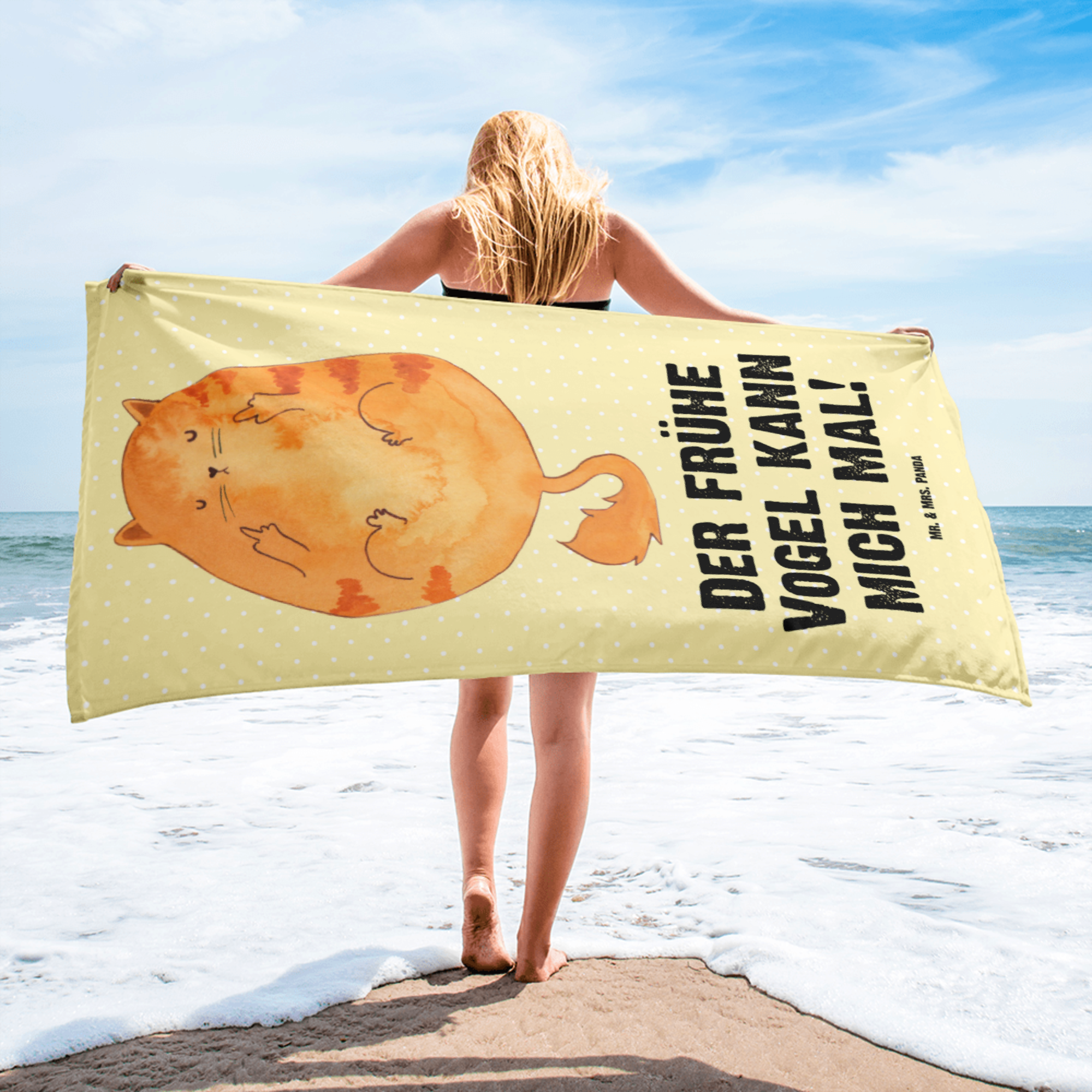 XL Badehandtuch Katze Frühaufsteher - mit Spruch - Gelb Pastell