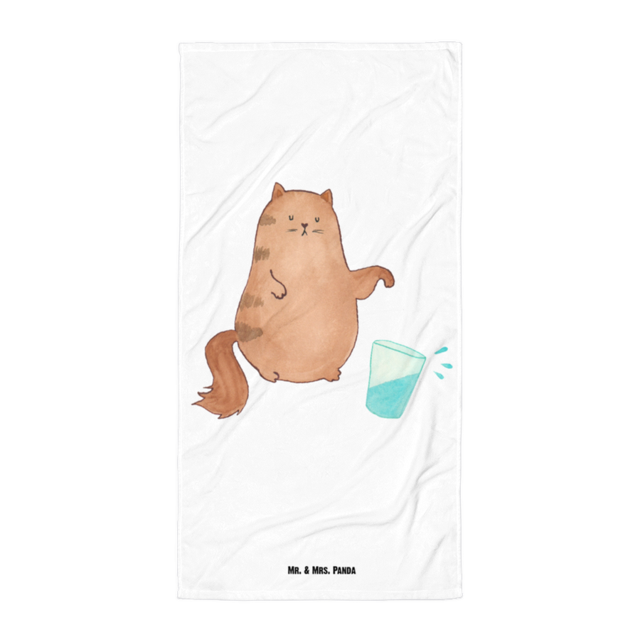 XL Badehandtuch Katze Wasserglas - ohne Spruch - Weiß