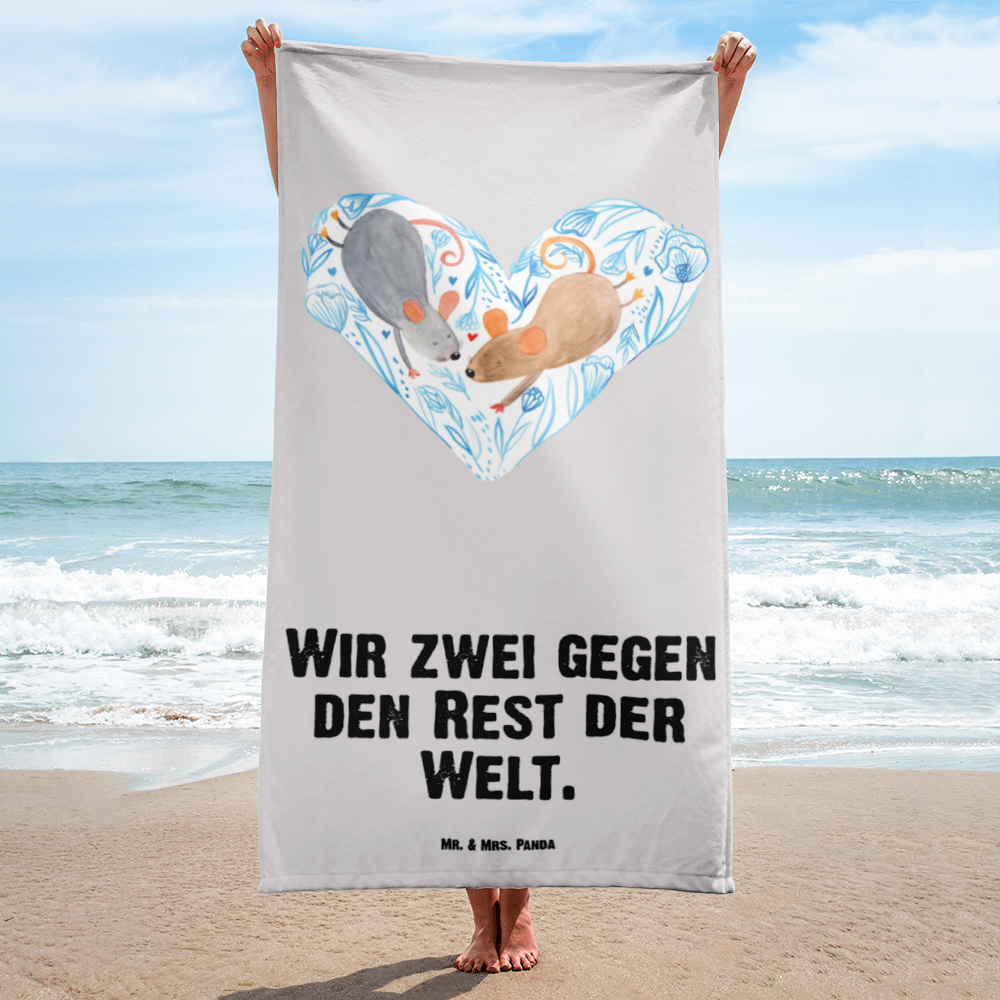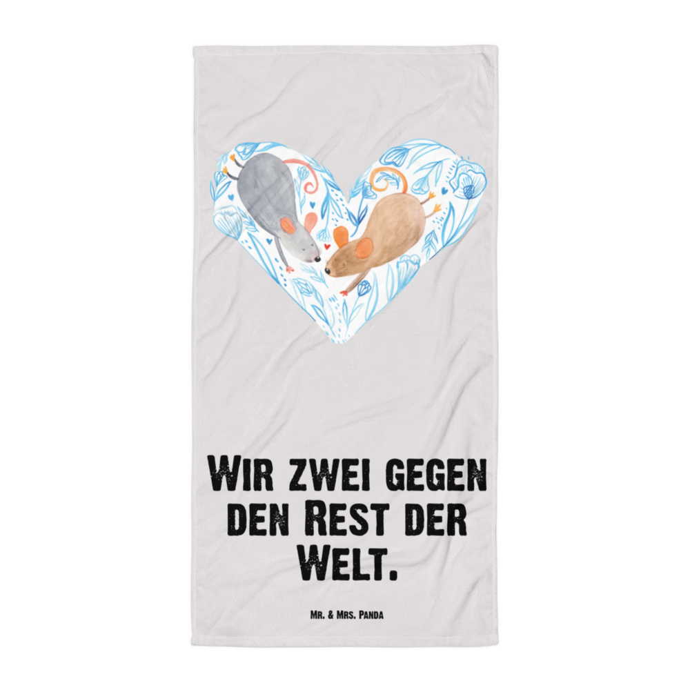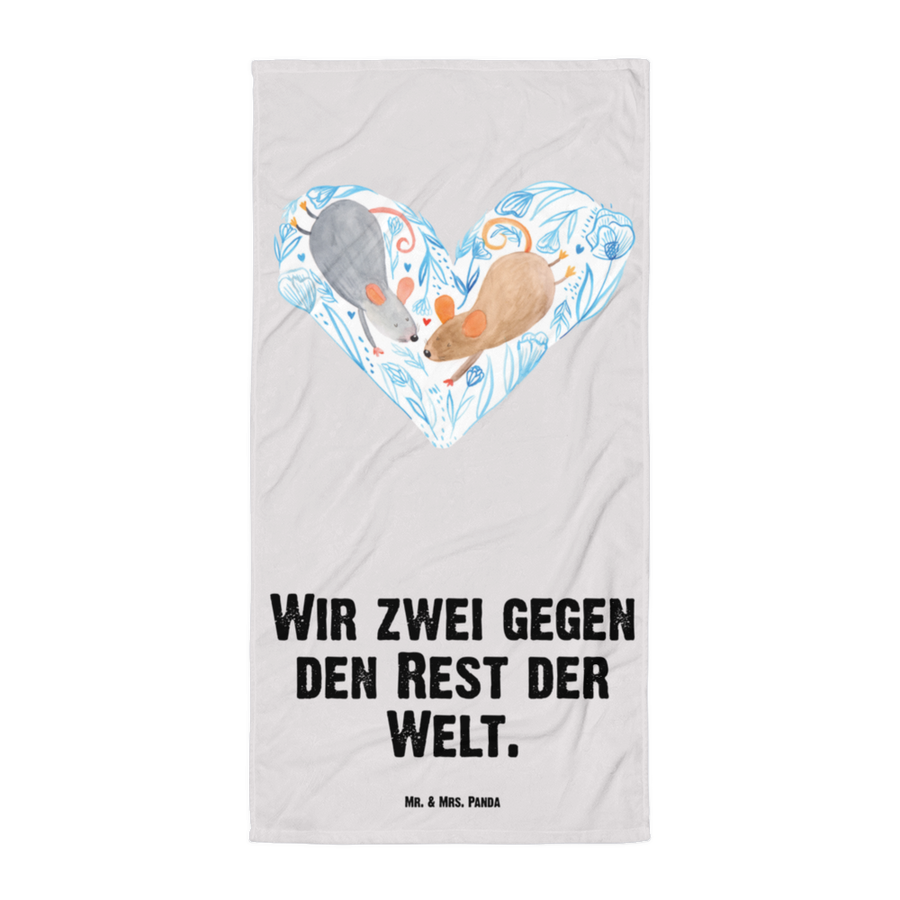 XL Badehandtuch Mäuse Herz - mit Spruch - Grau Pastell