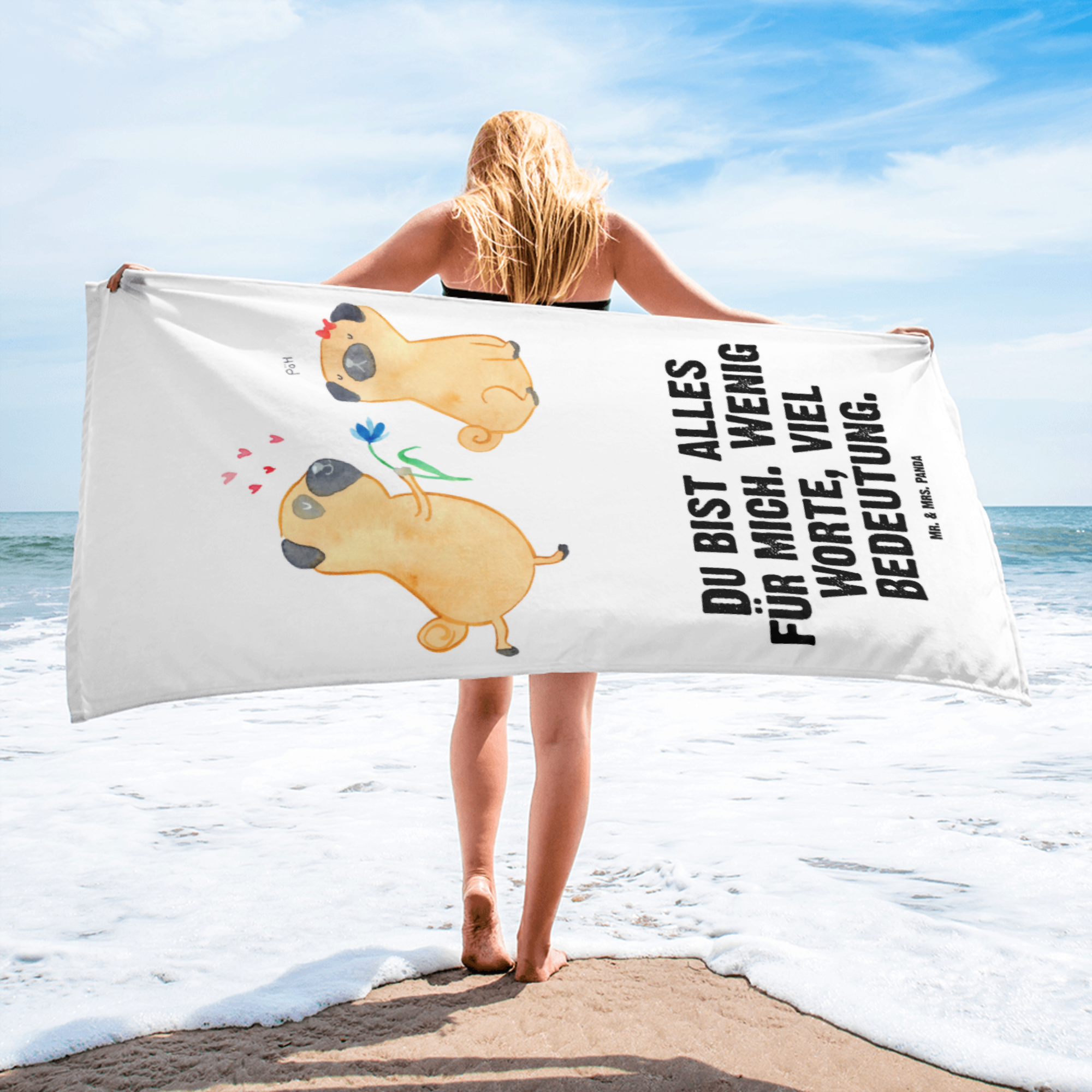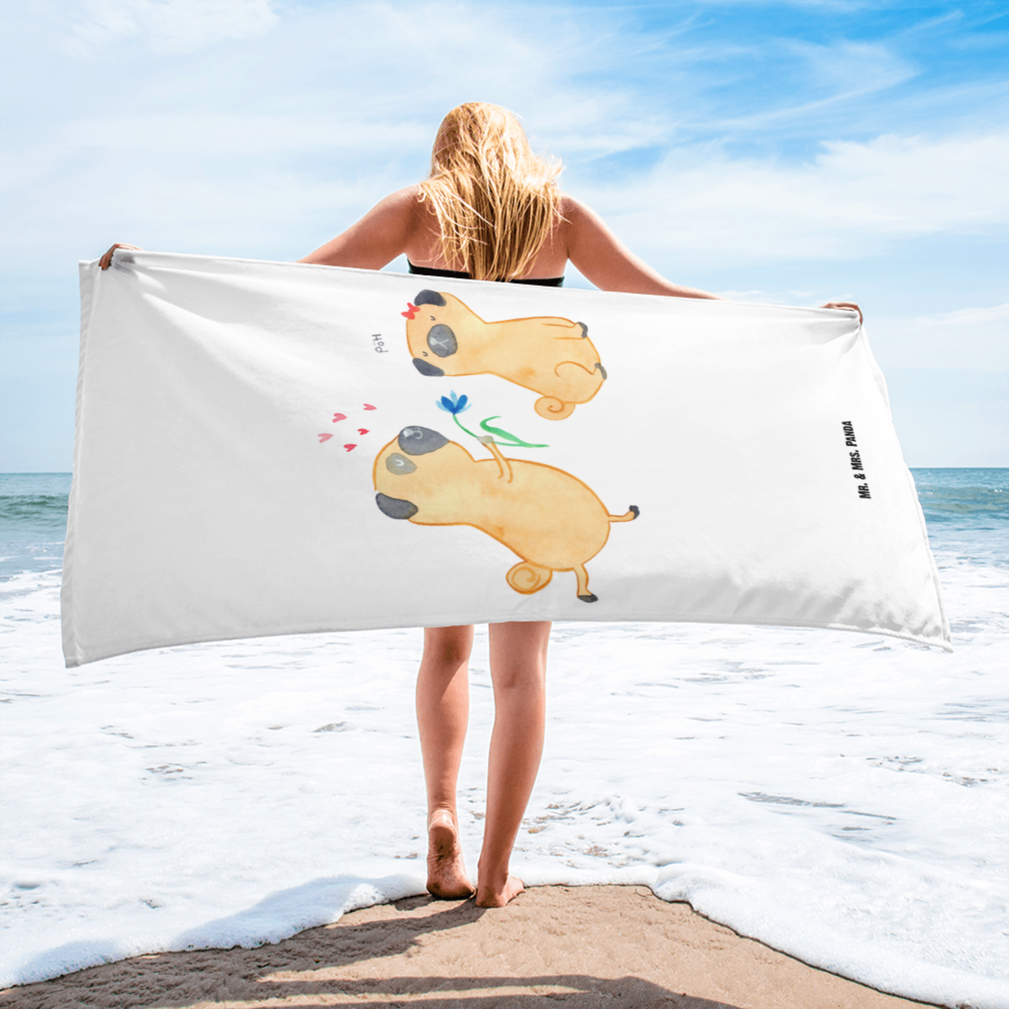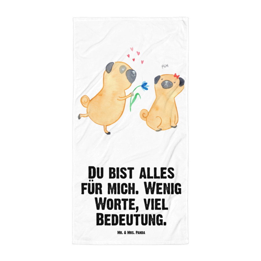 XL Badehandtuch Mops verliebt - mit Spruch - Weiß
