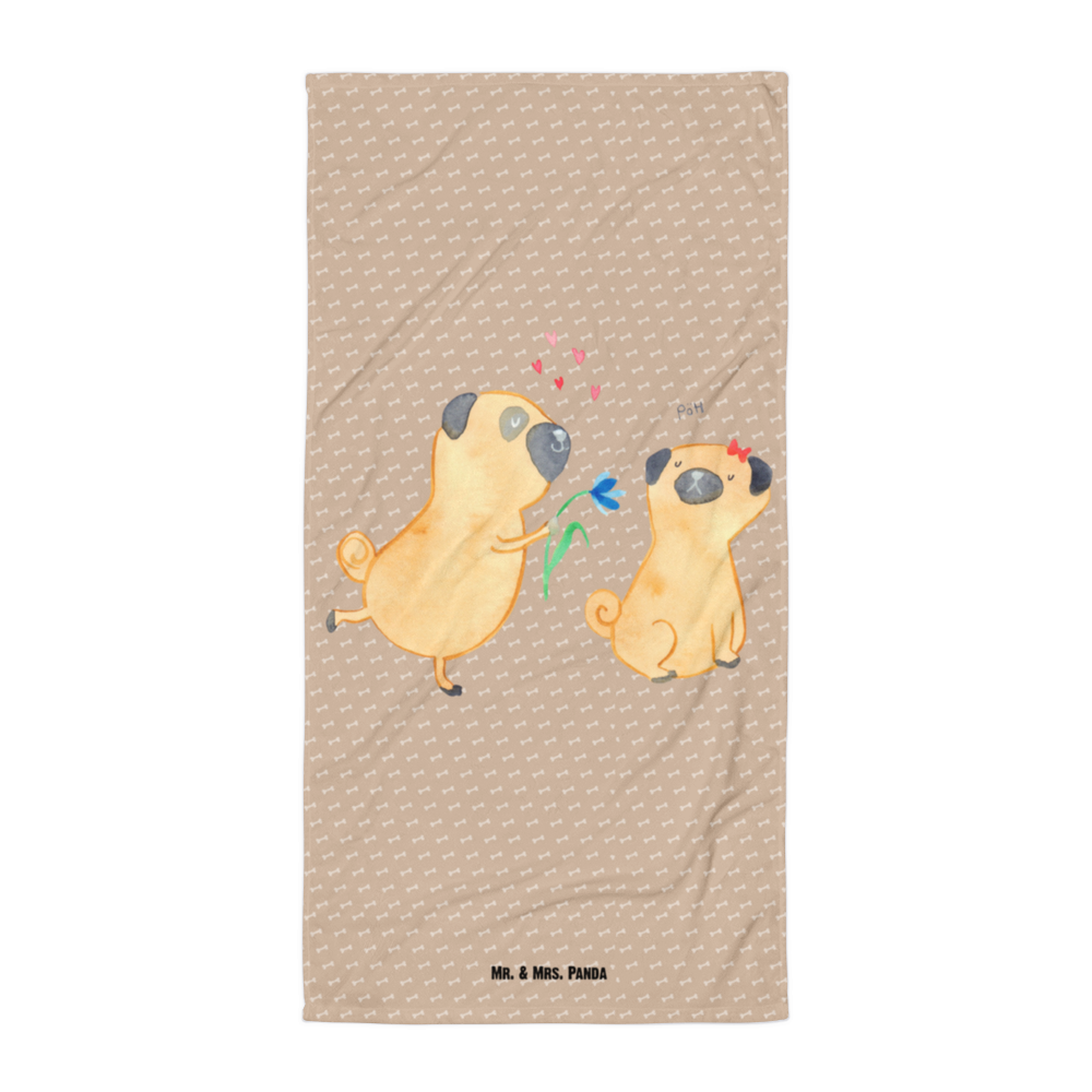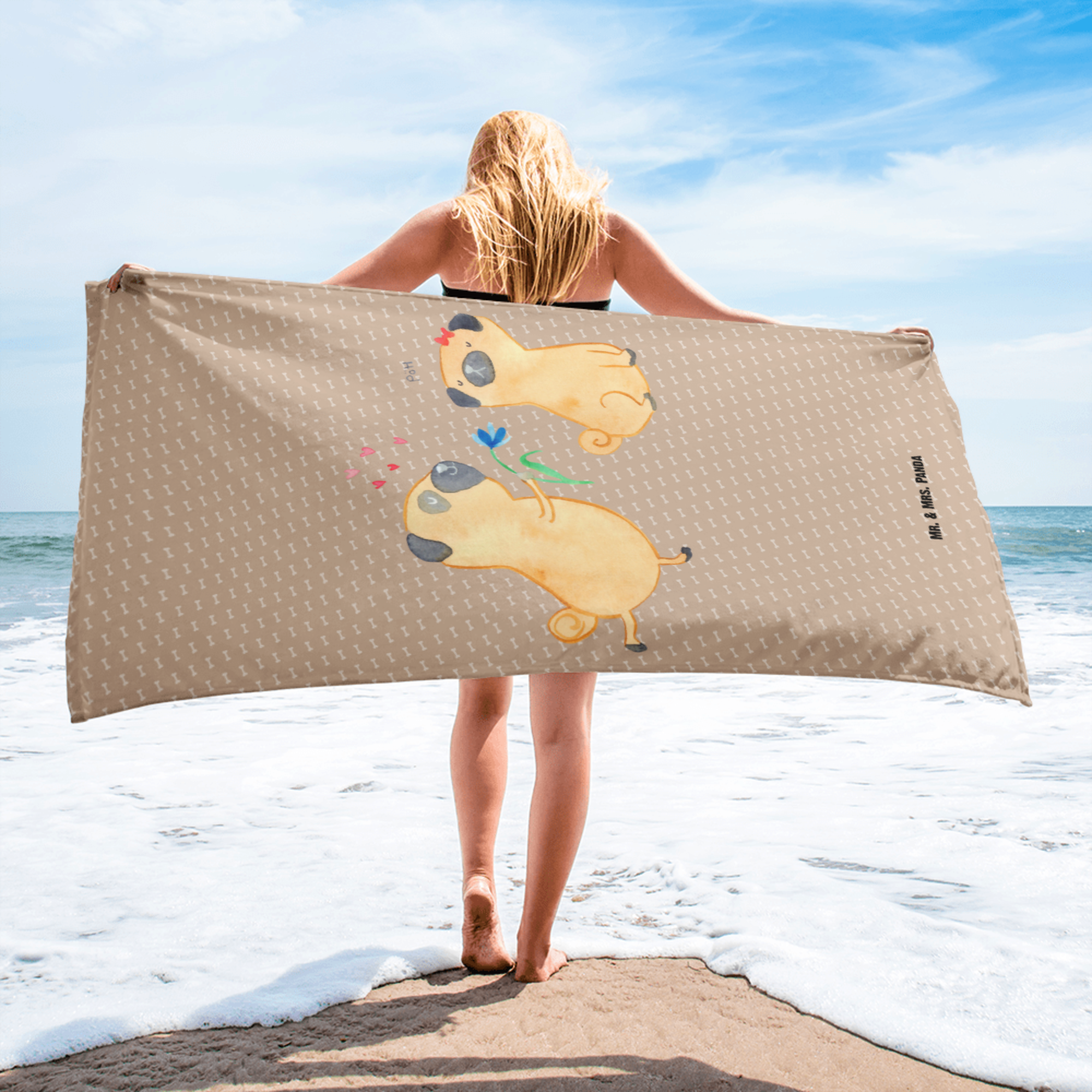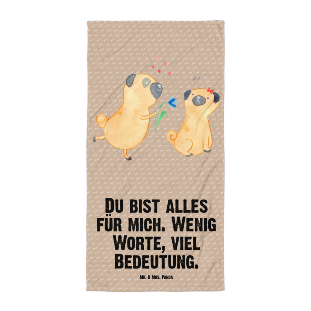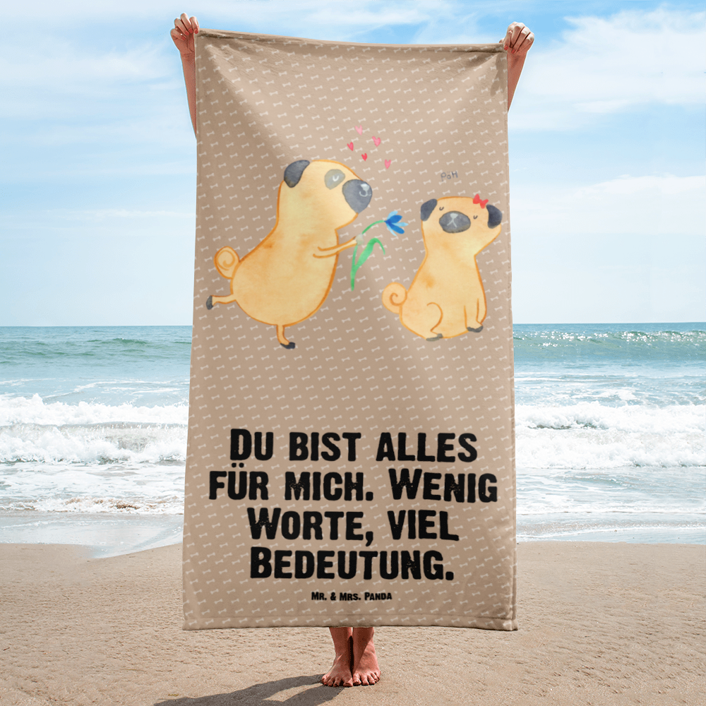 XL Badehandtuch Mops verliebt - mit Spruch - Weiß