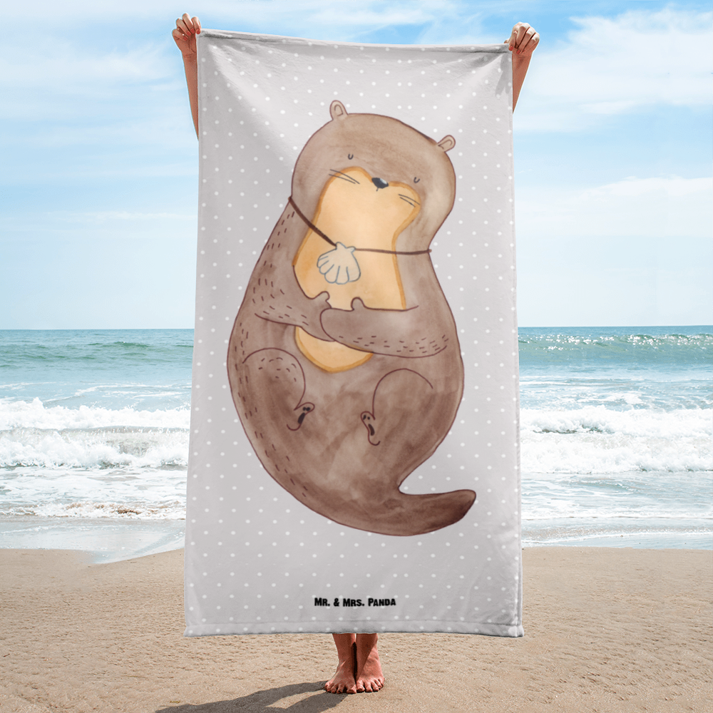 XL Badehandtuch Otter mit Muschelmedaillon - Muster - Blau