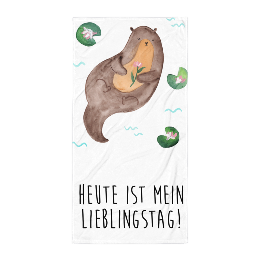 XL Badehandtuch Otter mit Seerose - mit Spruch - Weiß