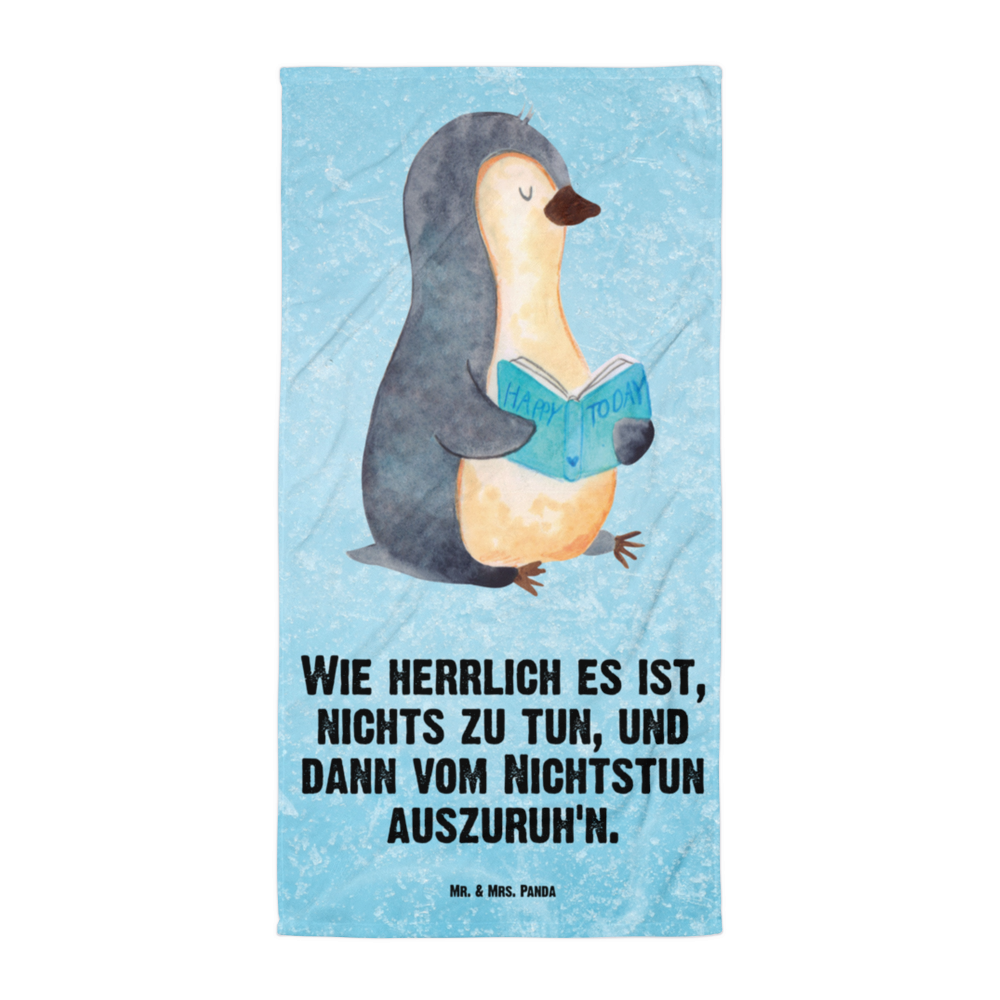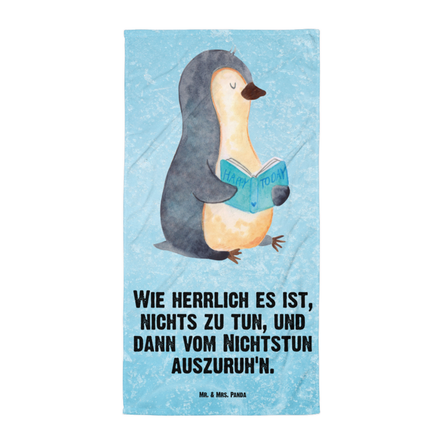 XL Badehandtuch Pinguin Buch - mit Spruch - Eisblau
