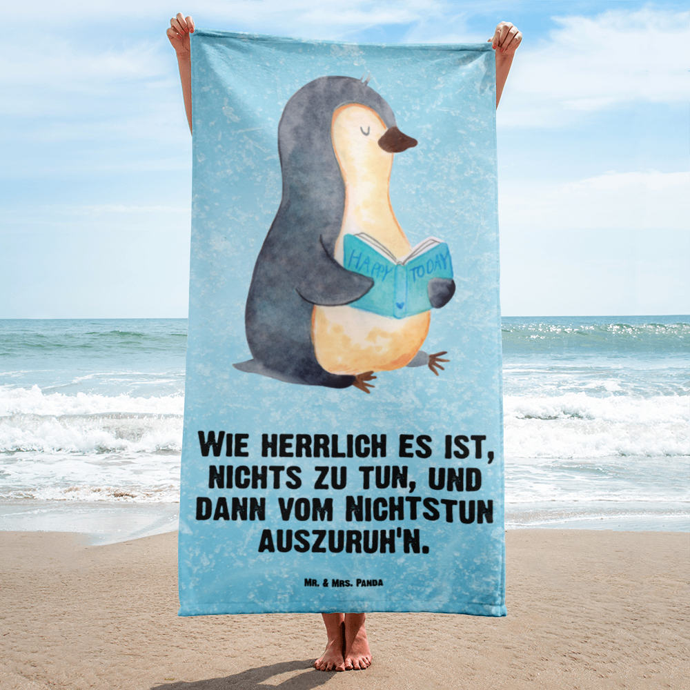 XL Badehandtuch Pinguin Buch Handtuch, Badetuch, Duschtuch, Strandtuch, Saunatuch, Pinguin, Pinguine, Buch, Lesen, Bücherwurm, Nichtstun, Faulenzen, Ferien, Urlaub, Freizeit