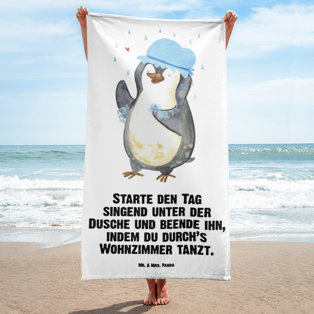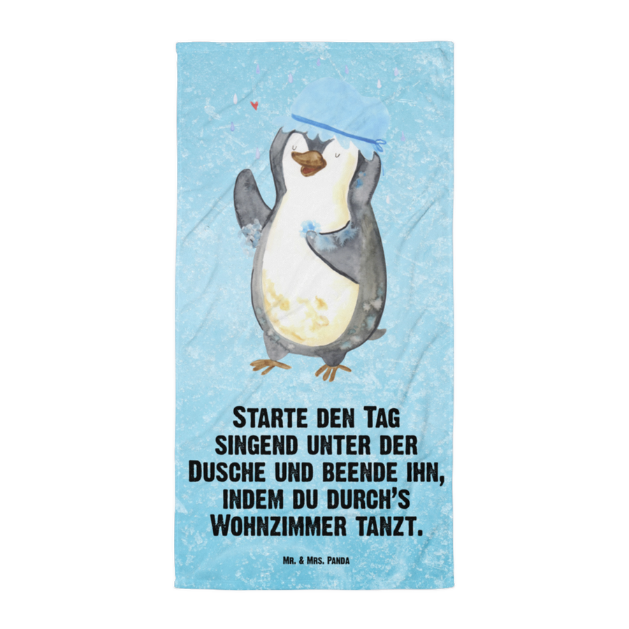 XL Badehandtuch Pinguin duscht - mit Spruch - Eisblau