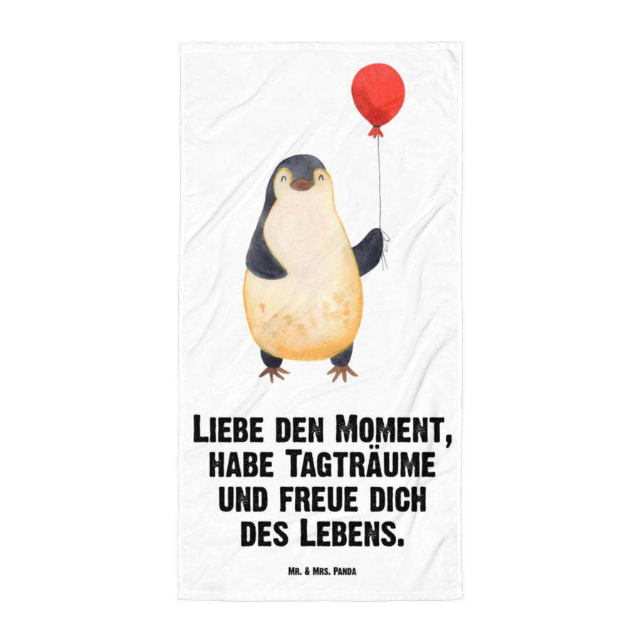 XL Badehandtuch Pinguin Luftballon - mit Spruch - Weiß