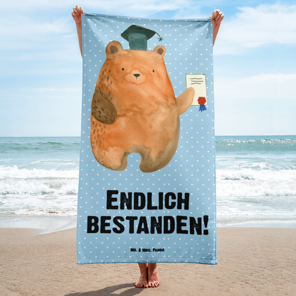 XL Badehandtuch Prüfungsbär - mit Spruch - Blau Pastell